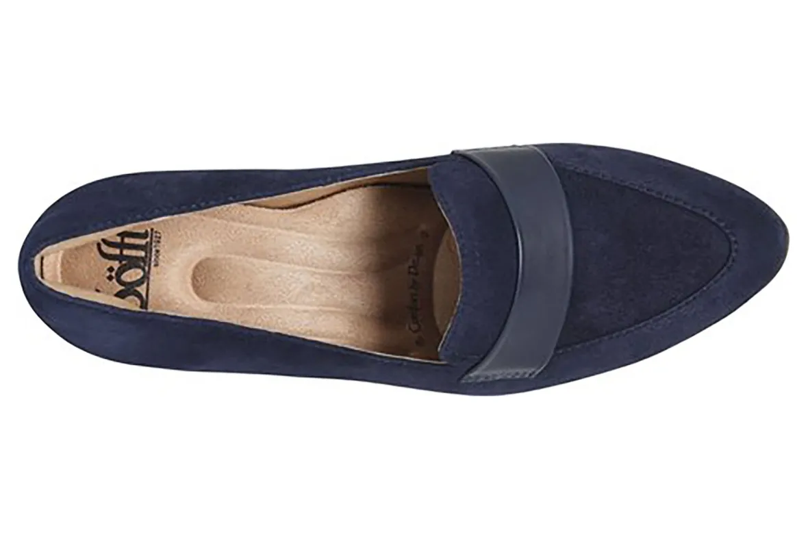 Sofft Parkdale is an upscale loafer pump. These trendy shoes have leather or suede uppers, padded heel collar, leather lining and flexible TPR outsole. A cushioned footbed, pointed toe and 3-inch polished or stacked heel helps these pumps stand out.