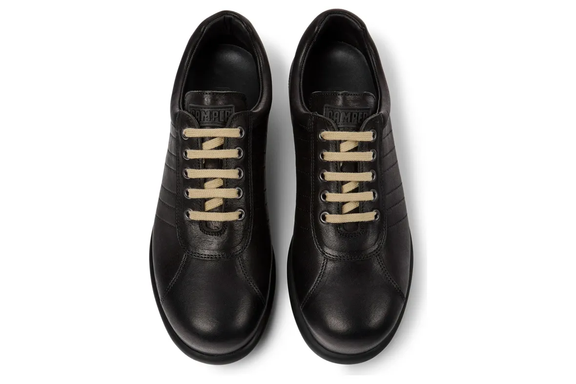 Camper Pelotas 16002 is a sturdy and reliable men’s shoe. These trendy sneakers have tanned calfskin uppers, removable footbed and stitched rubber outsole. A padded collar and tongue, lace-up construction and rubber sphere outsole will make these shoes a new favorite.