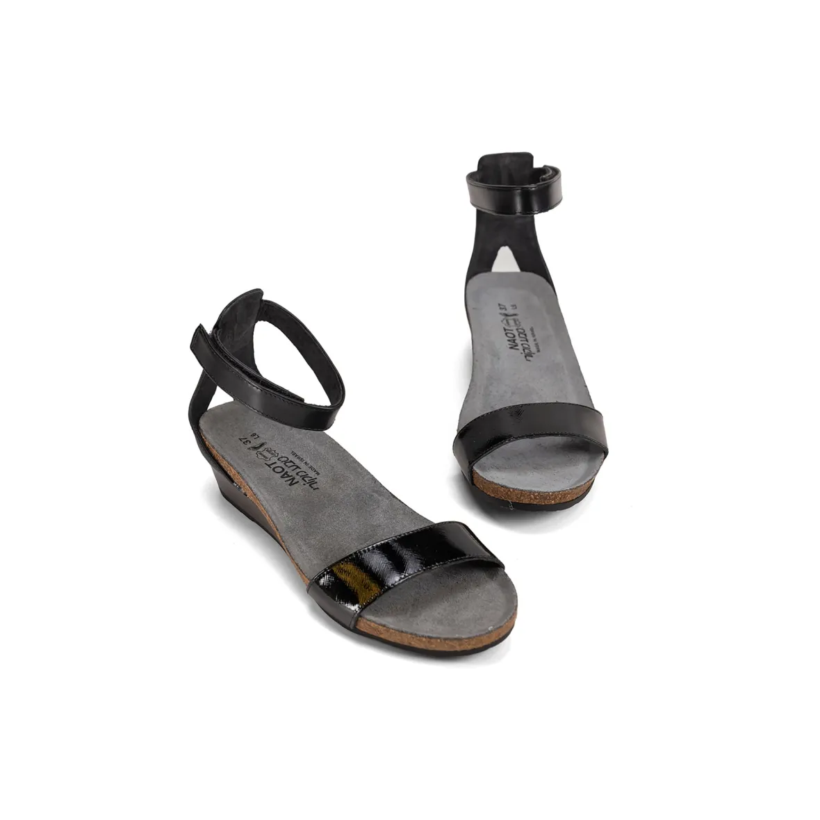 The Naot Pixie is a stylish wedge sandal with contrasting leathers. This style features a hook and loop ankle strap for stability. Naot’s anatomic cork & latex footbed is wrapped in a pampering suede and molds to the shape of the foot with wear.