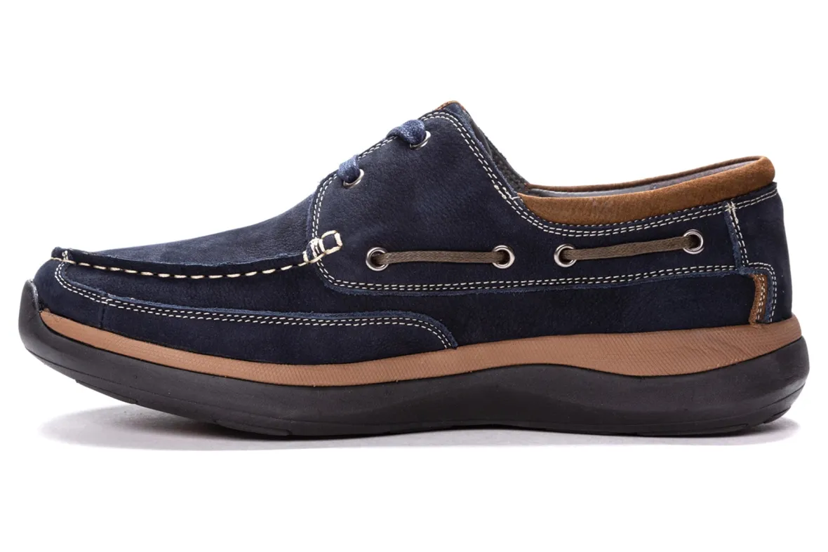 Propet Pomeroy is a comfortable and stylish boat shoe. This warm weather footwear has leather uppers, removable footbed and an EVA midsole and outsole. A breathable mesh lining, round moc toe, lace-up closure and 1-inch platform height makes these boat shoes stand out.