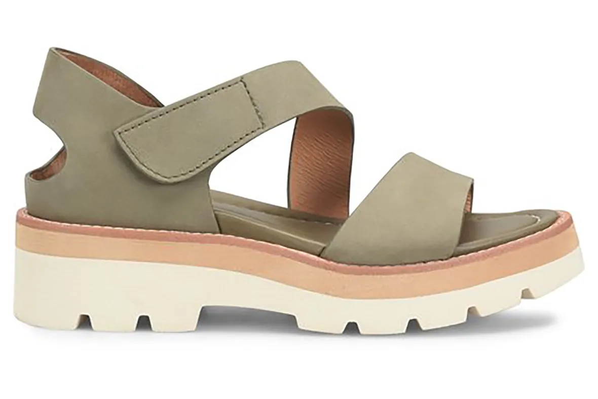 Sofft Pru is a sporty and durable warm weather sandal. These versatile shoes have rugged lug soles, adjustable hook and loop straps and a lightweight EVA midsole.