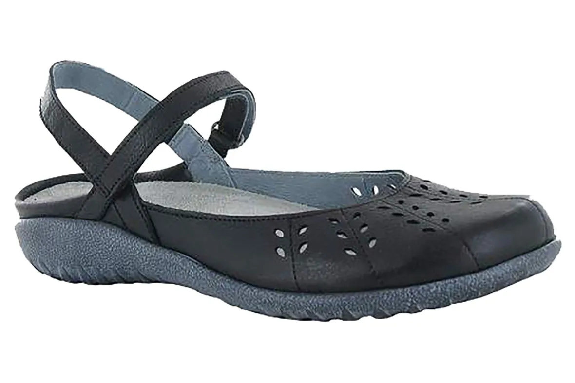 The Rari is offered in soft leather and nubuck with floral inspired cutouts on the upper. A smooth leather lining and a hook and loop backstrap allows for adjustability and comfort. Naot’s removable, anatomic cork & latex footbed is wrapped in pampering suede and molds to the shape of the foot with wear. The Koru Collection features a 1″ polyurethane sole which is extremely lightweight, durable & slip resistant. This collection uses a hand-sewn stroble construction making it strong and extremely flexible.American Podiatric Medical Association (APMA) Accepted for promoting good foot health.