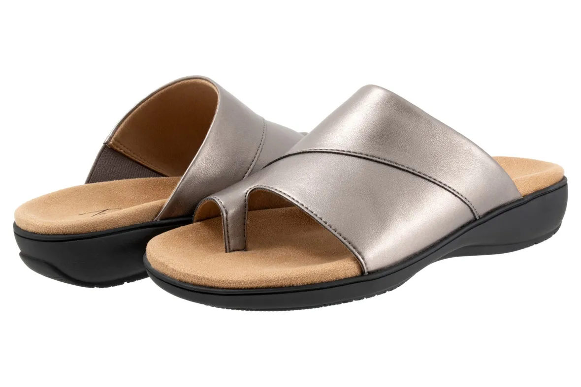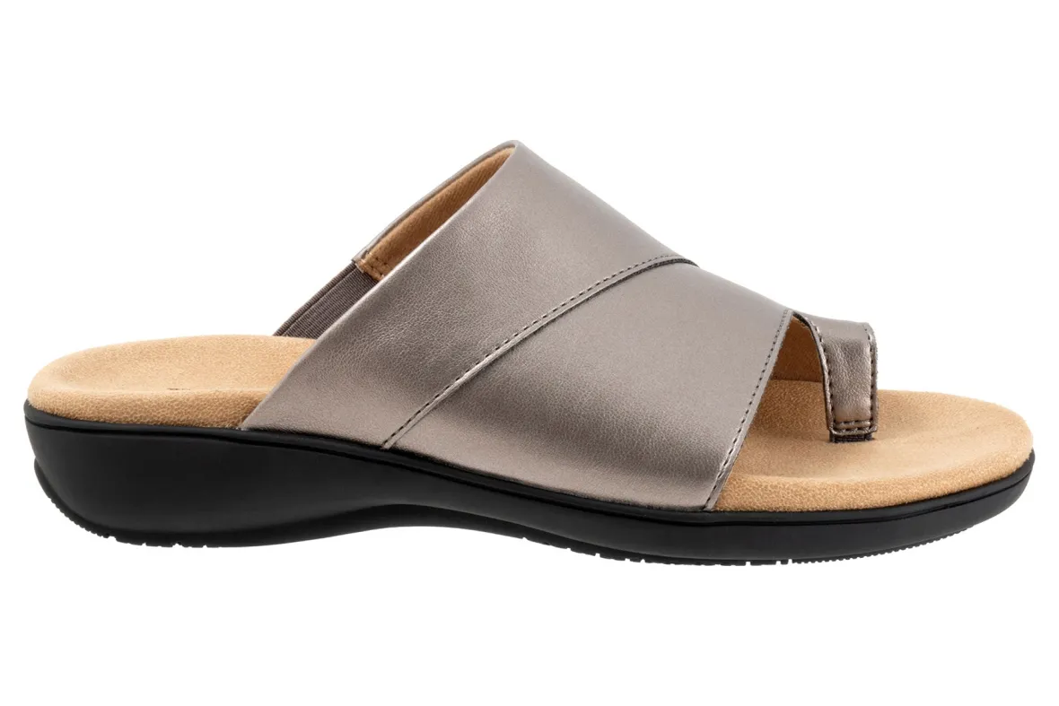 Trotters Regina is a cool and versatile toe-ring sandal. These chic shoes have soft leather uppers, a memory foam and EVA footbed and a flexible rubberized outsole with a 1.25-inch heel height.