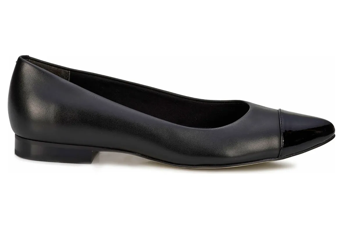 Refine your look with this sleek flat! The Remi by Ros has a delicate pointed toe that is designed to not pinch or bind yet stuns with a mirrored leather cap toe! A plush micro-fabric sueded insole includes signature Tiny Pillows insoles, which bounce back step after step!