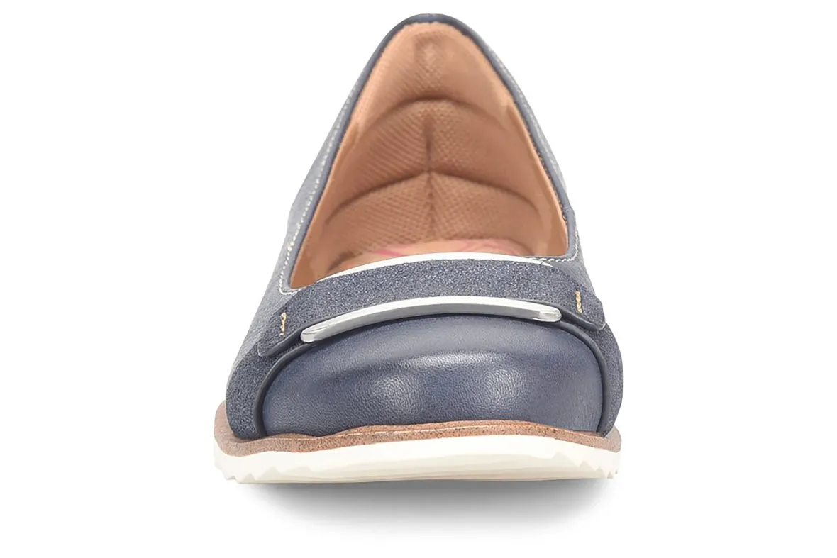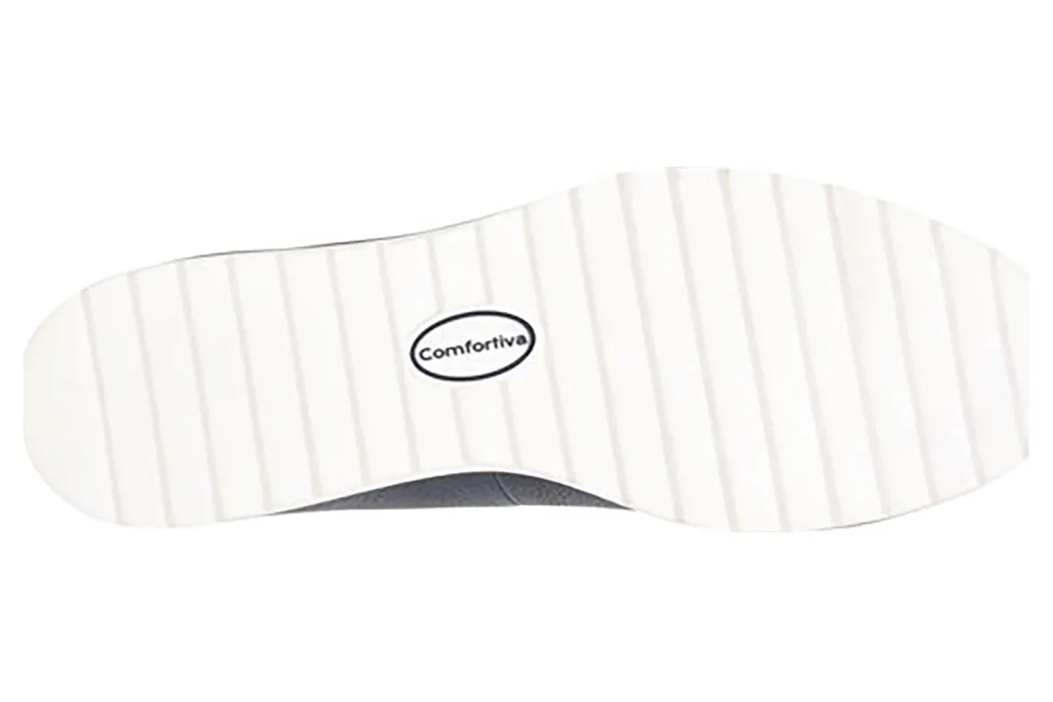 Comfortiva Rhoda is a comfy and versatile ballet flat. These flat shoes have leather uppers, memory foam footbed, round toe and slip-resistant TPR outsole. A metallic vamp ornament, padded heel collar, microfiber lining and ½ inch heel height makes these flats irresistible.