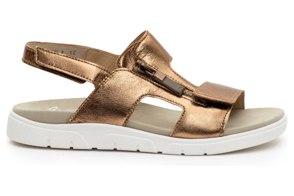 Roanoke is a sporty sandal featuring a stylish zipper and two points of adjustability with hook & loop closures. The foo…