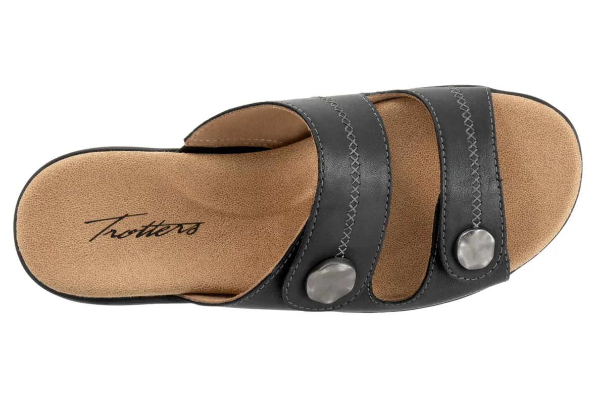 The Ruthie Stitch sandal has everything you love (fully adjustable straps, comfortable footbed) the Ruthie sandal now with a stitch pattern on the straps topped off with a large ornament.