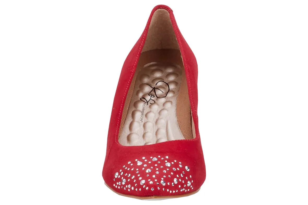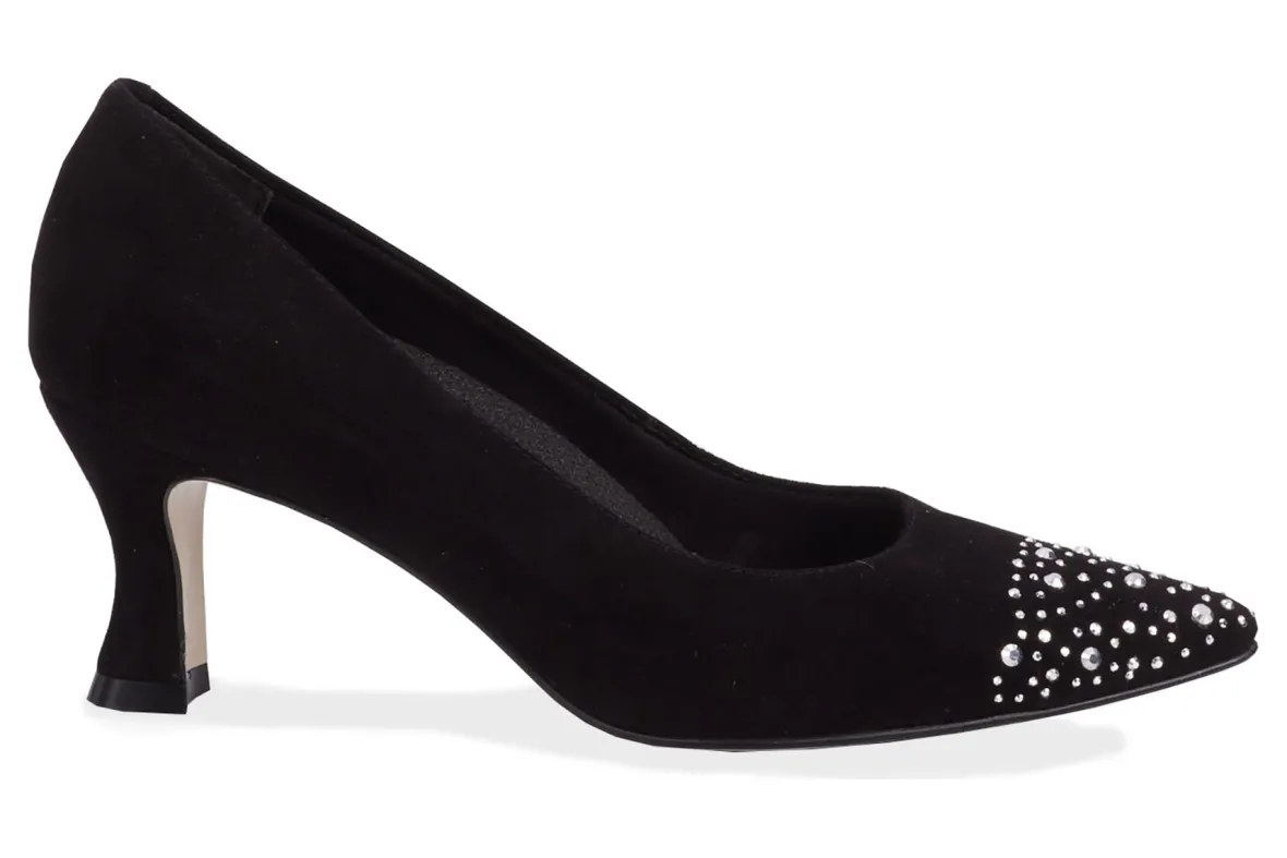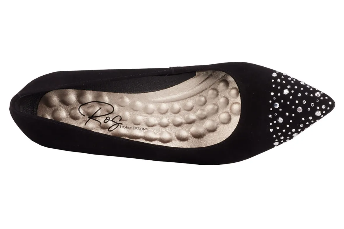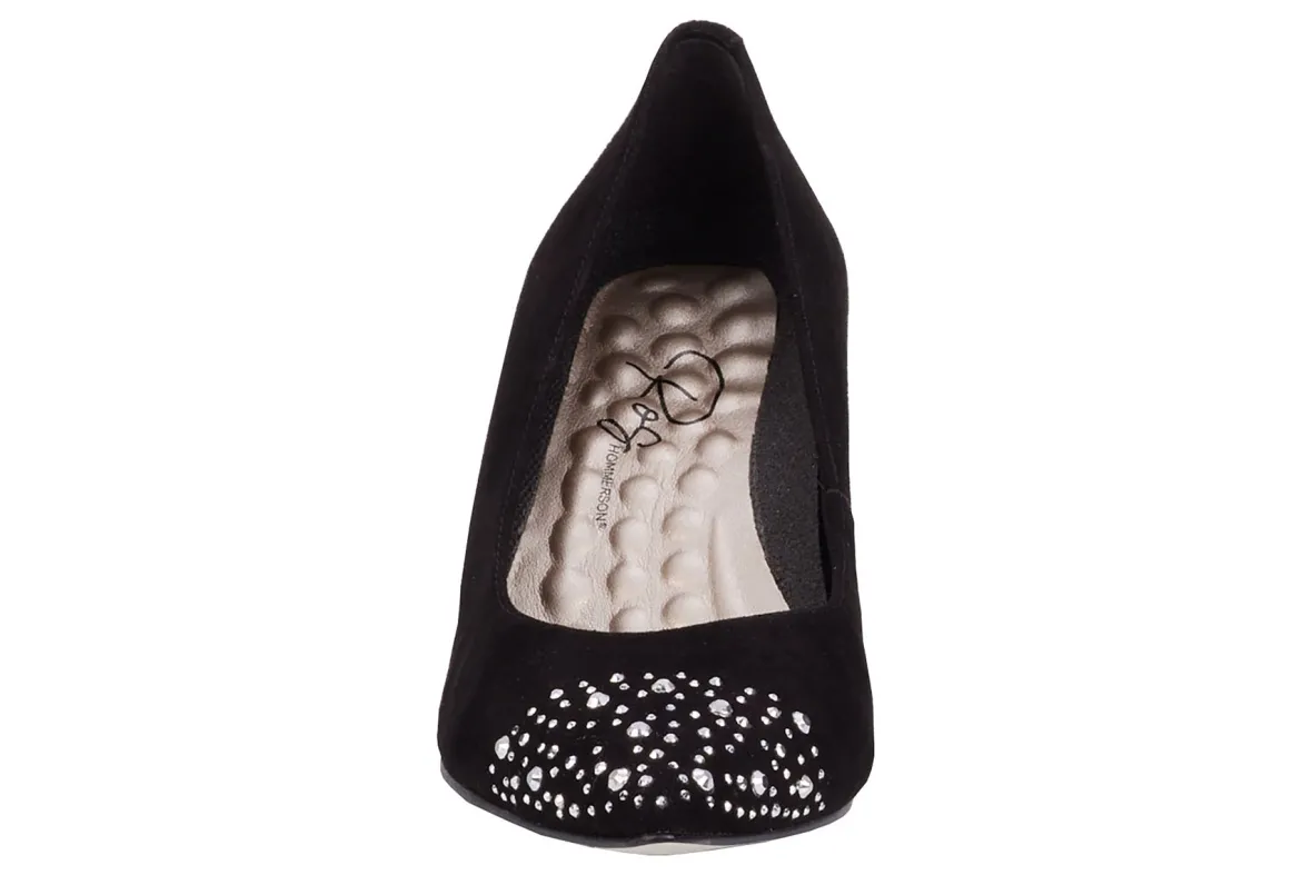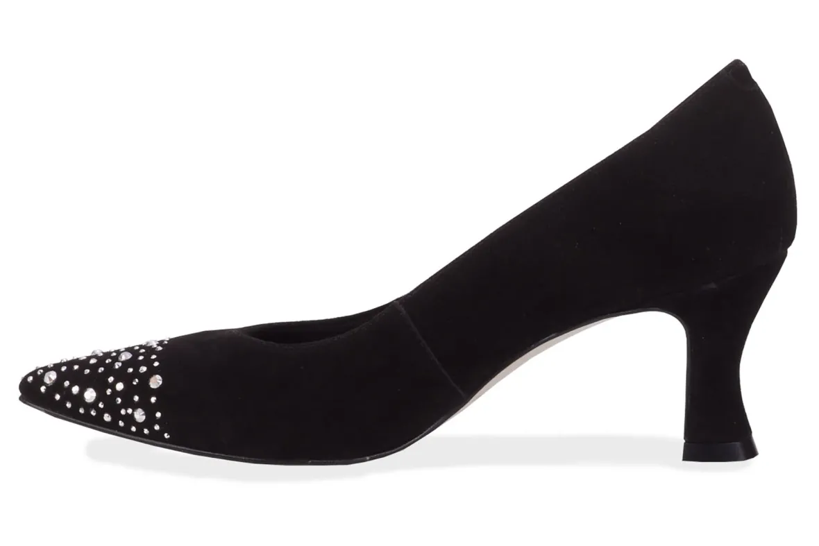 Stunning and sexy are what you get with Sadee by Ros. This striking pump adds flair to a classic design with a sprinkling of bling on the slightly pointed toe and a lovely sculptured heel. Made in soft suede, Sadee includes our signature Tiny Pillows insoles so you’ll never take another step without experiencing the best in comfortable heels! Soft suede uppers Softly pointed toe Knit fit lining Polyurethane sock lining Cushioned, removable Tiny Pillows insoles Rubber outsole Heel height: 2 1/2 inch Made in Brazil