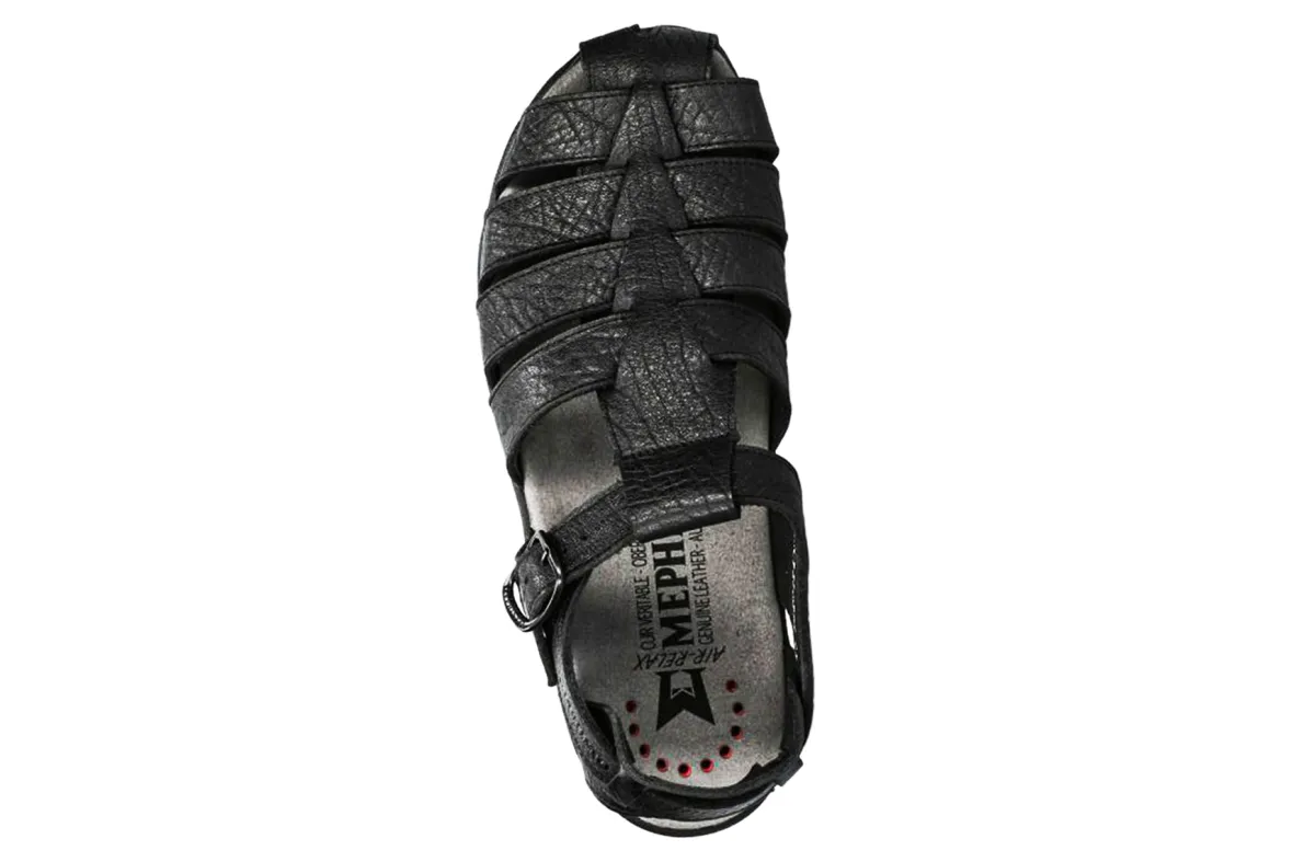 Easy to slip on and very comfortable, this sandal will satisfy all your daily needs. The SOFT-AIR midsole and SHOCK-ABSORBER help to minimize the impact for an effortless walk with a spring in your step. The AIR-RELAX technology respects the anatomy of the foot to prevent fallen arches. Its adjustable, functional strap has a buckle fastening for added ease. MEPHISTO SAM | Men Sandals Black Leather Crumpled Effect