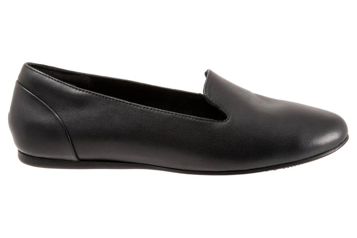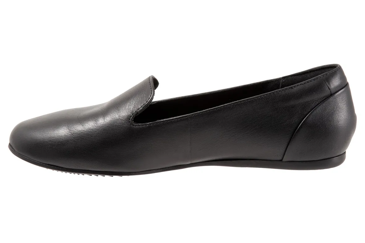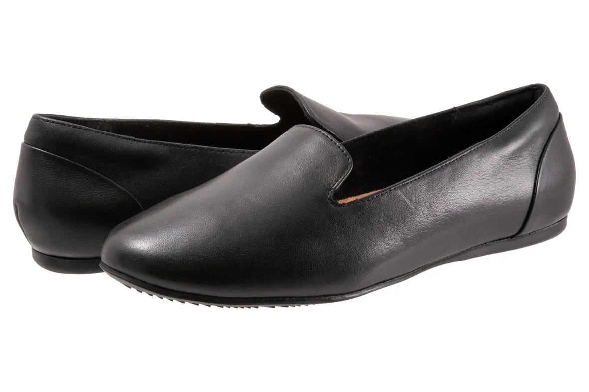 Softwalk Shelby is a cute and refined flat loafer. These fashionable flat shoes have leather uppers, a cushioned removable footbed and textured rubber outsole. This smoking shoe inspired silhouette also has pointed toe design, microfiber lining and a lined and cushioned insole.