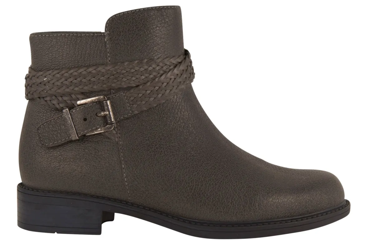 David Tate Skip is a chic and stylish women’s boot. Prominent features include pebble-grain leather uppers, inside zipper closure and durable rubber outsole. A cushioned insole, adjustable buckle, 1 ¼ inch stacked heel and 4 ½ inch shaft height outlines these fashionable boots.Pebble-Grain Leather Upper.Cushioned Insole.Inside Zipper Closure.Durable Rubber Outsole.Heel Height: 1 1/4 inches.