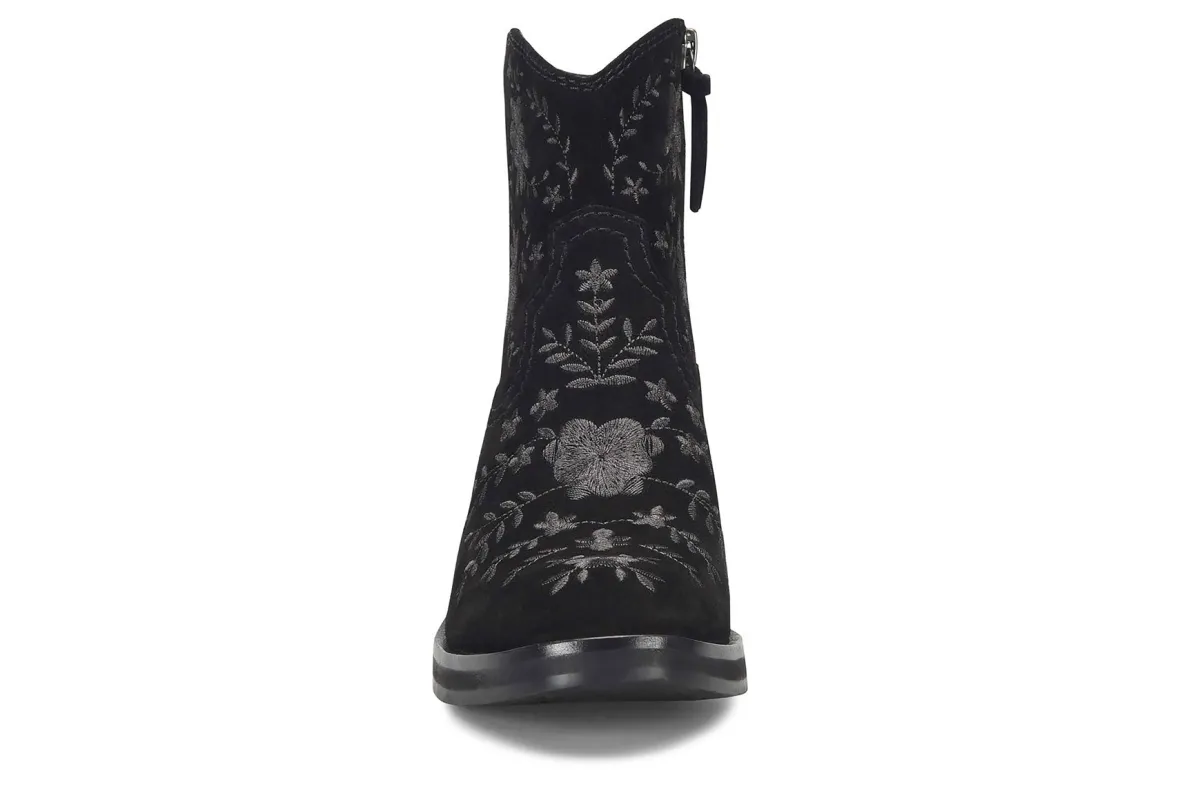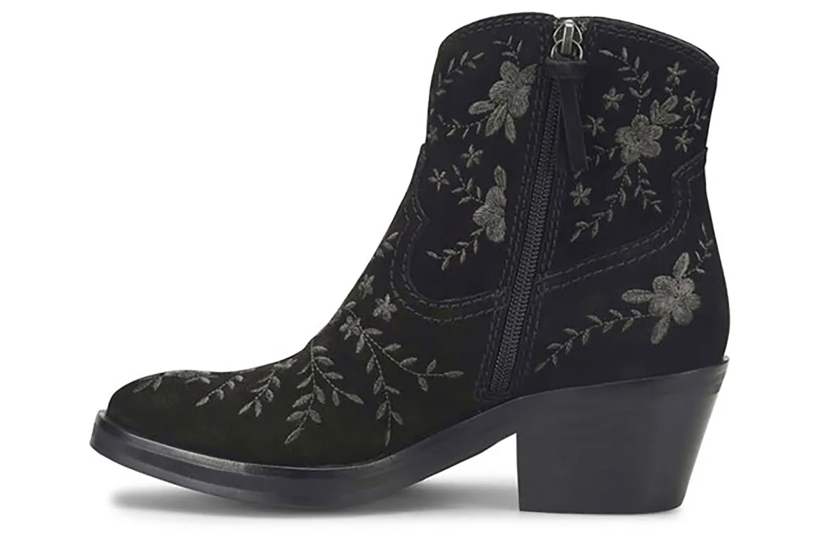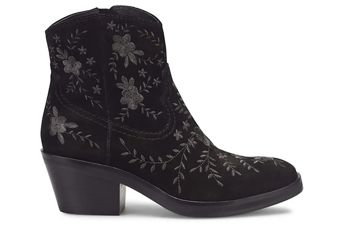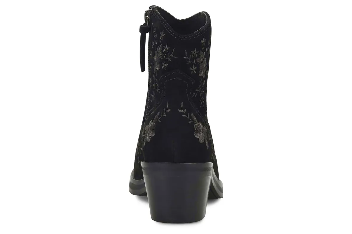 A new take on a classic western silhouette makes a statement with bold EVA striped outsole combined with a casual snip toe and low undercut heel. Artisanal floral embroidery pops on western-inspired Sofft Sophie boot, detailed in premium Italian leathers and suede.