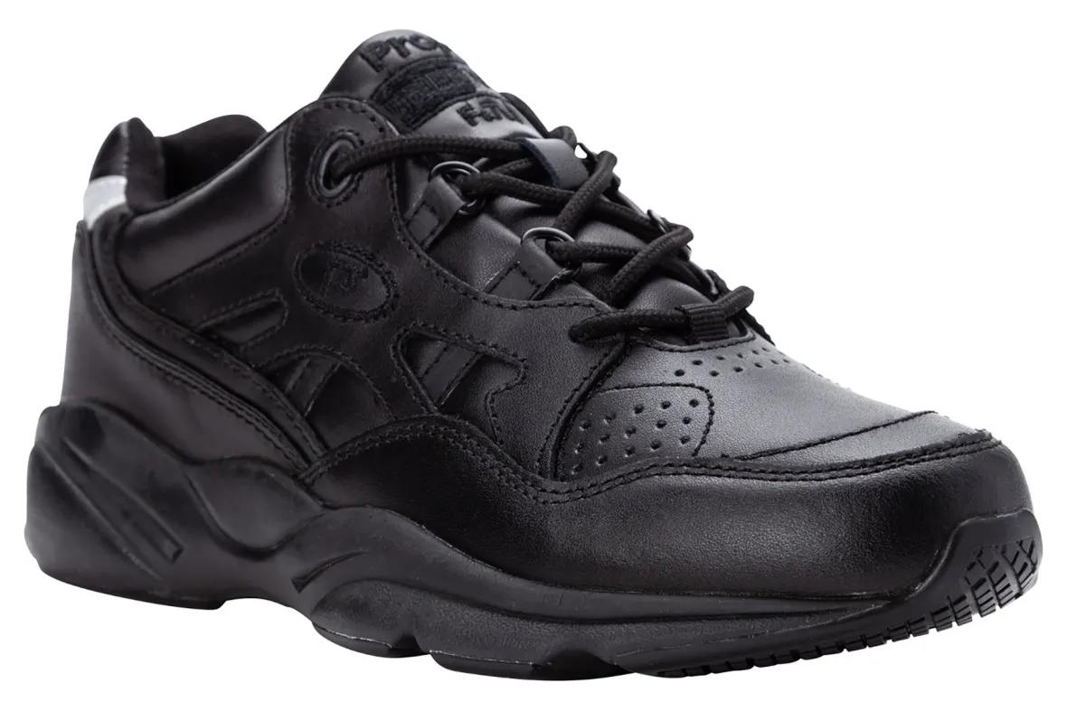 Head to work wearing the Propet Stark Sneaker and keep your feet at ease even on busy days. This lace-up sneaker is designed to keep your feet comfortable, as it features a removable cushioned polyurethane insole with memory foam, supportive midsole, and slip-resistant rubber outsole.
