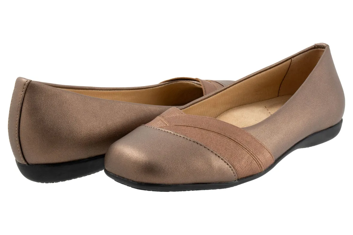 Trotters Stella is a timeless ballet flat with superior comfort. These flats have premium leather uppers, a removable cushioned footbed, a soft microfiber footbed lining and a molded rubber outsole.