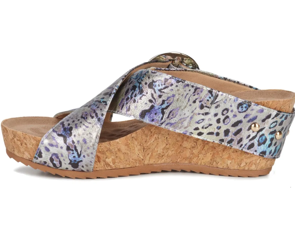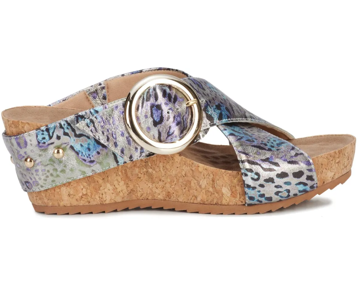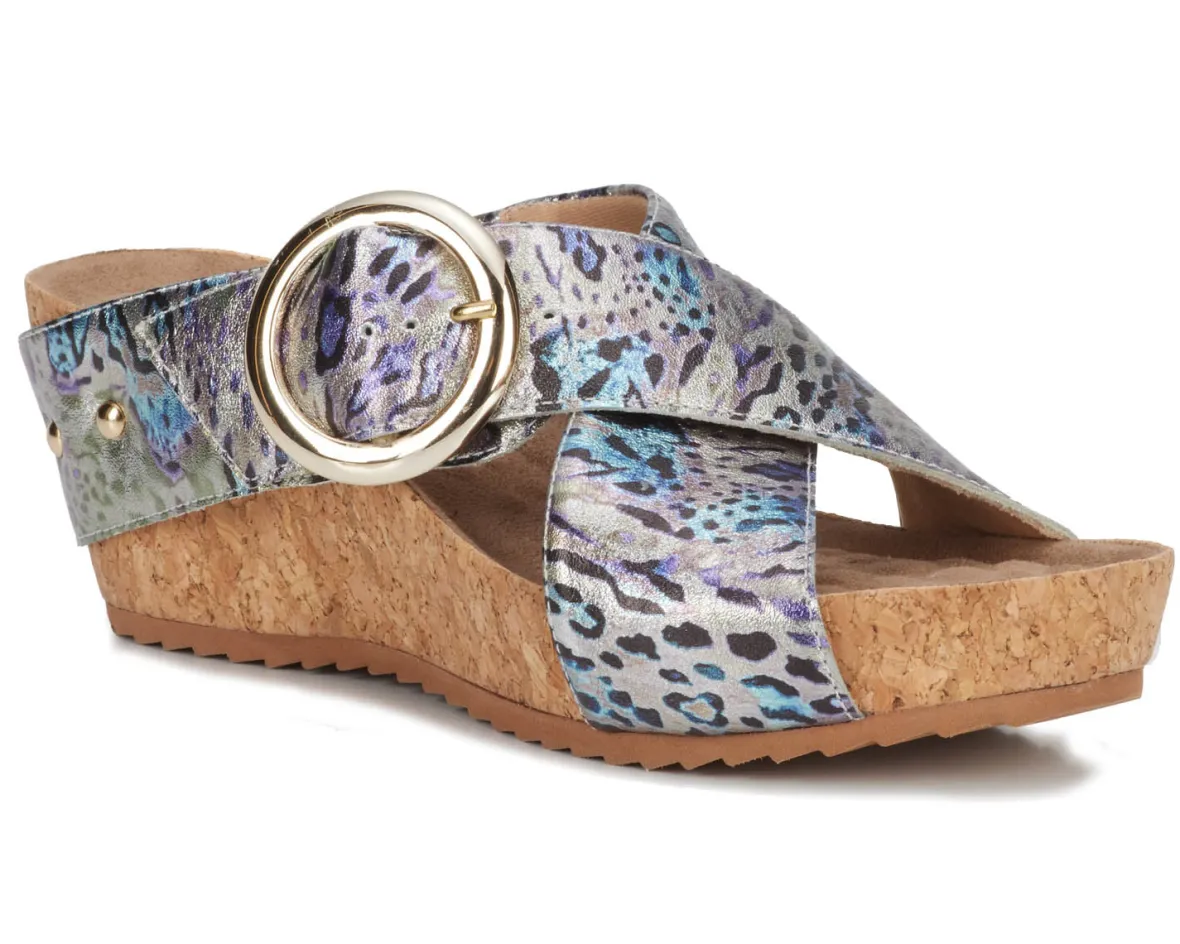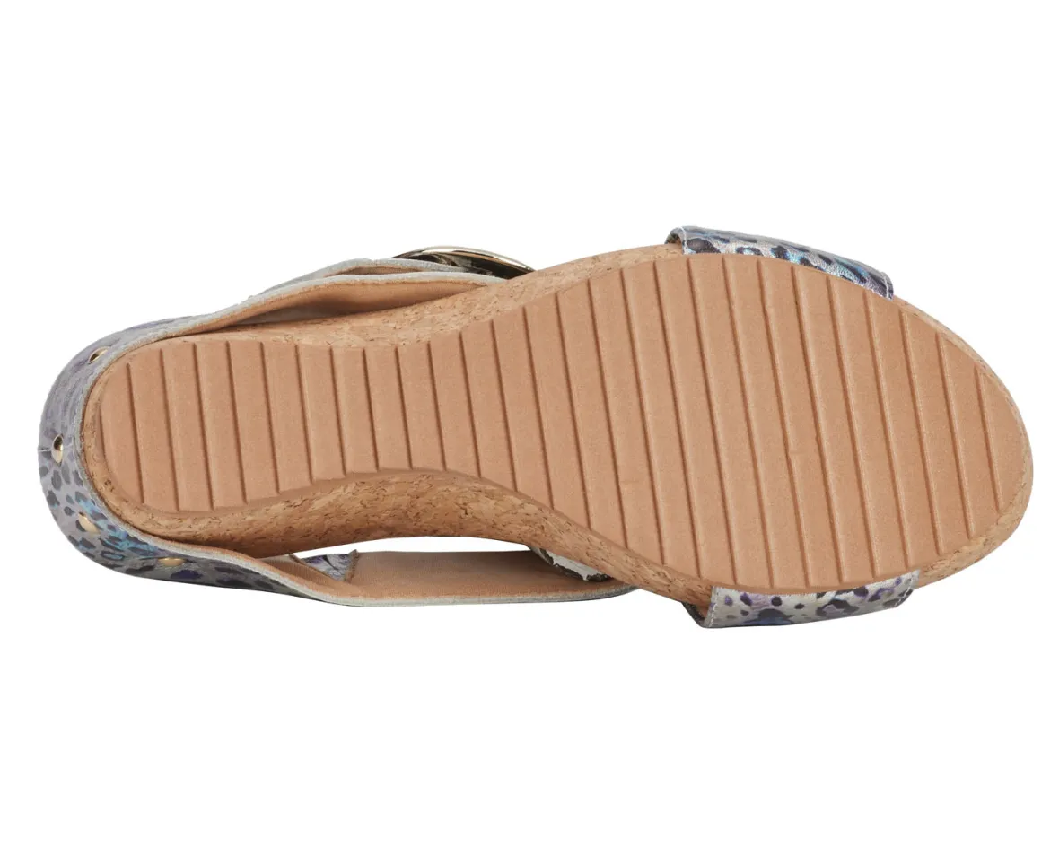 Ros Hommerson Tabitha II is a versatile wedge sandal. These warm weather shoes have adjustable hook and loop straps with a large metal buckle, signature Tiny Pillows insoles and a 2 ½ inch heel height.