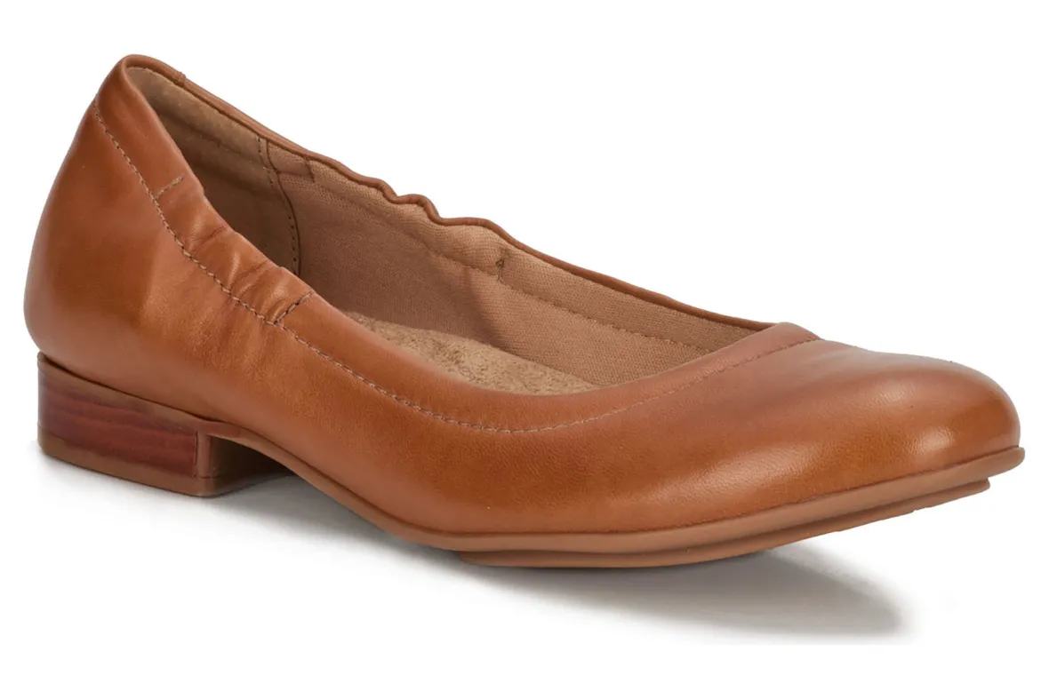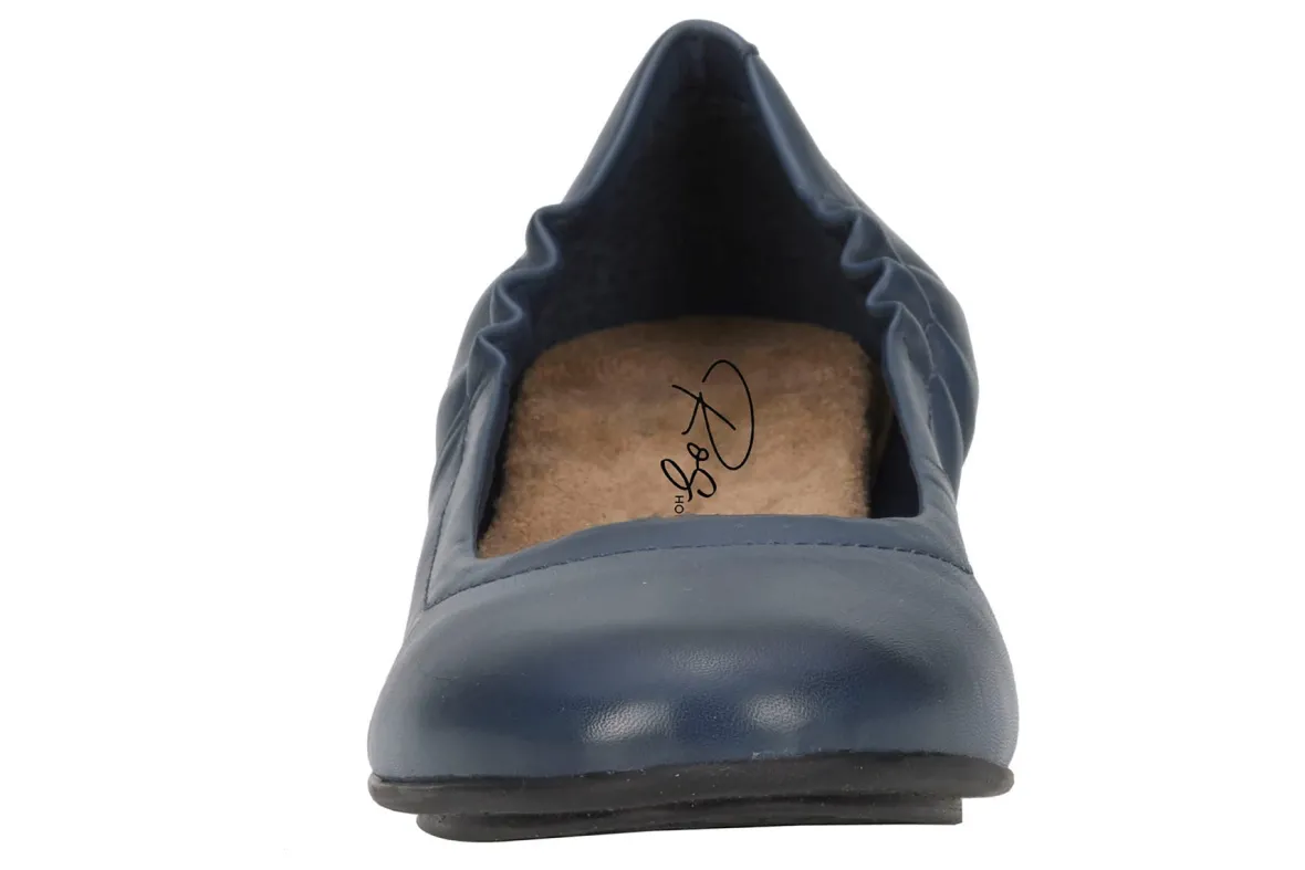 Treat your feet to the super-soft cushioning, roomy toe box and elasticized topline of the Tess flat by Ros. Our signature cushioned Tiny Pillows insoles have moderate arch support and help absorb shock while on your feet, but are also removable to accommodate an orthotic. The 3/4” stacked heel is perfect for walking all day!