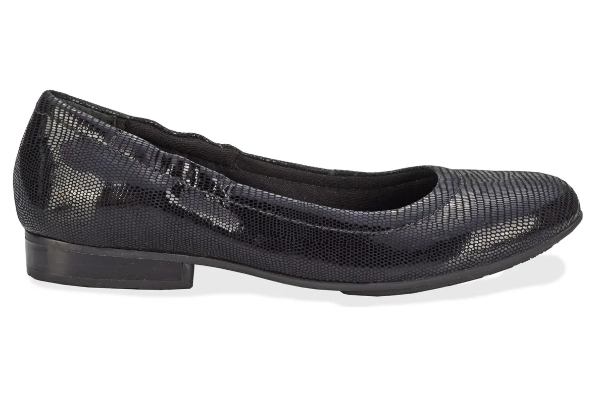 Treat your feet to the super-soft cushioning, roomy toe box and elasticized topline of the Tess flat by Ros. Our signature cushioned Tiny Pillows insoles have moderate arch support and help absorb shock while on your feet, but are also removable to accommodate an orthotic. The 3/4” stacked heel is perfect for walking all day!
