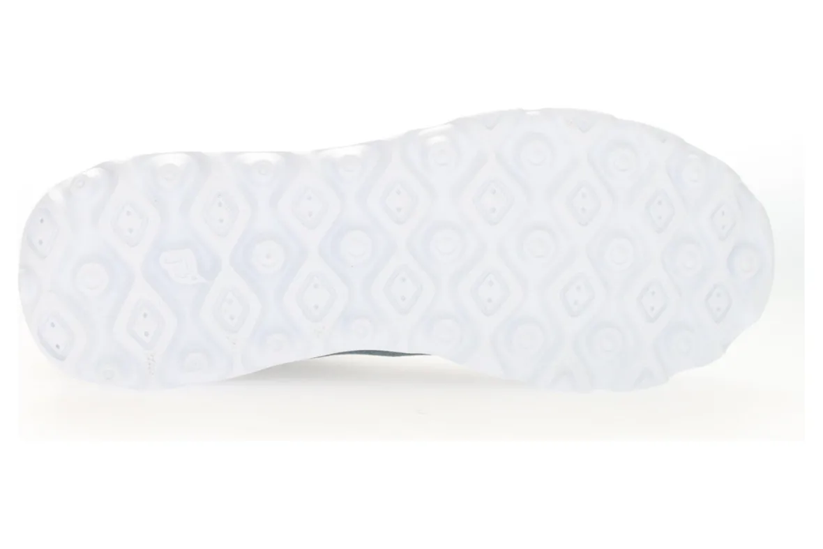 Breathable enginered mesh upper with a firm heel counter for walking comfort.