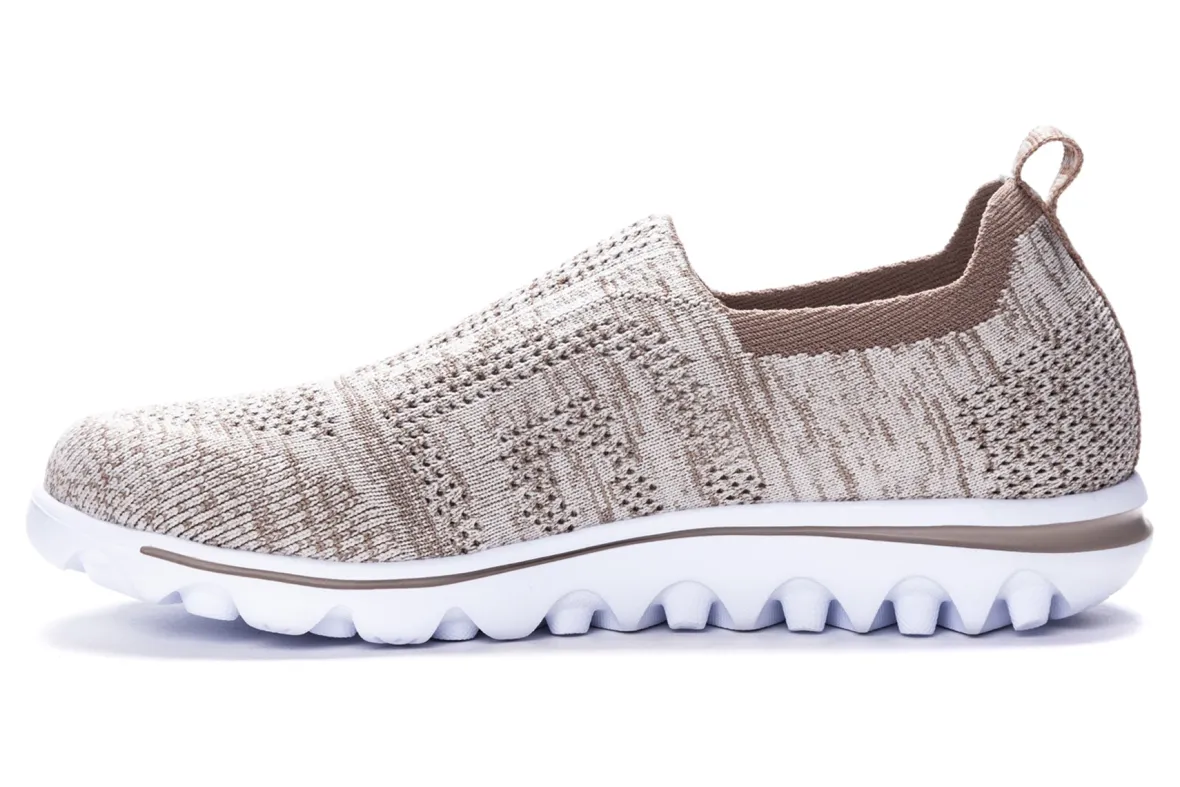 Variable stretch knit mesh adapts to the shape of your foot which means flexible movement and comfort all day. Open cell PU foam allows air to flow for a cooler, healthier footbed. Plus our embedded EVA cushioned board for comfort. The lightweight TravelTek? outsole combines EVA and rubber for long lasting wear and a deep tread pattern for traction. Stretchable Flexible