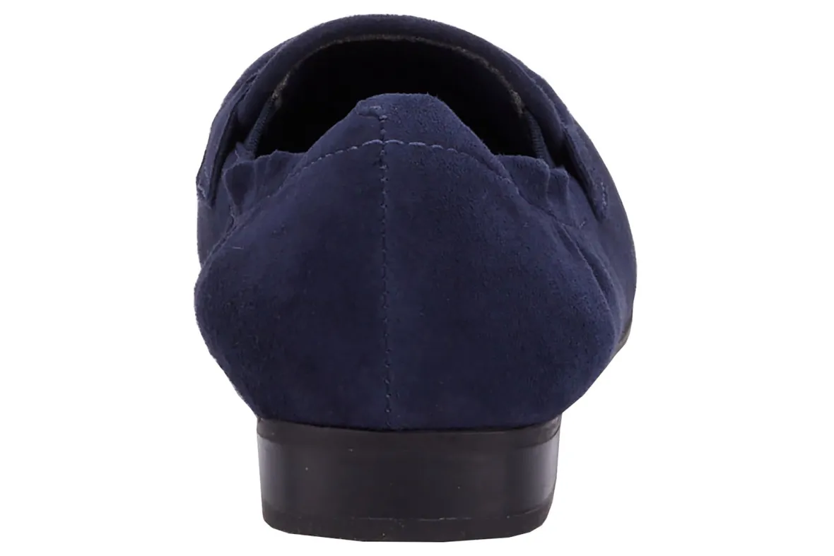 Heavenly bliss is what your feet will experience with Trish by Ros. Made from soft suede in a classic penny loafer style, Trish also gives you super-soft cushioning, a roomy toe box and an elasticized topline that provides ultimate fit and comfort. Our signature cushioned Tiny Pillows insoles have moderate arch support and help absorb shock while on your feet, but are also removable to accommodate an orthotic. The 3/4” stacked heel is perfect for walking all day!