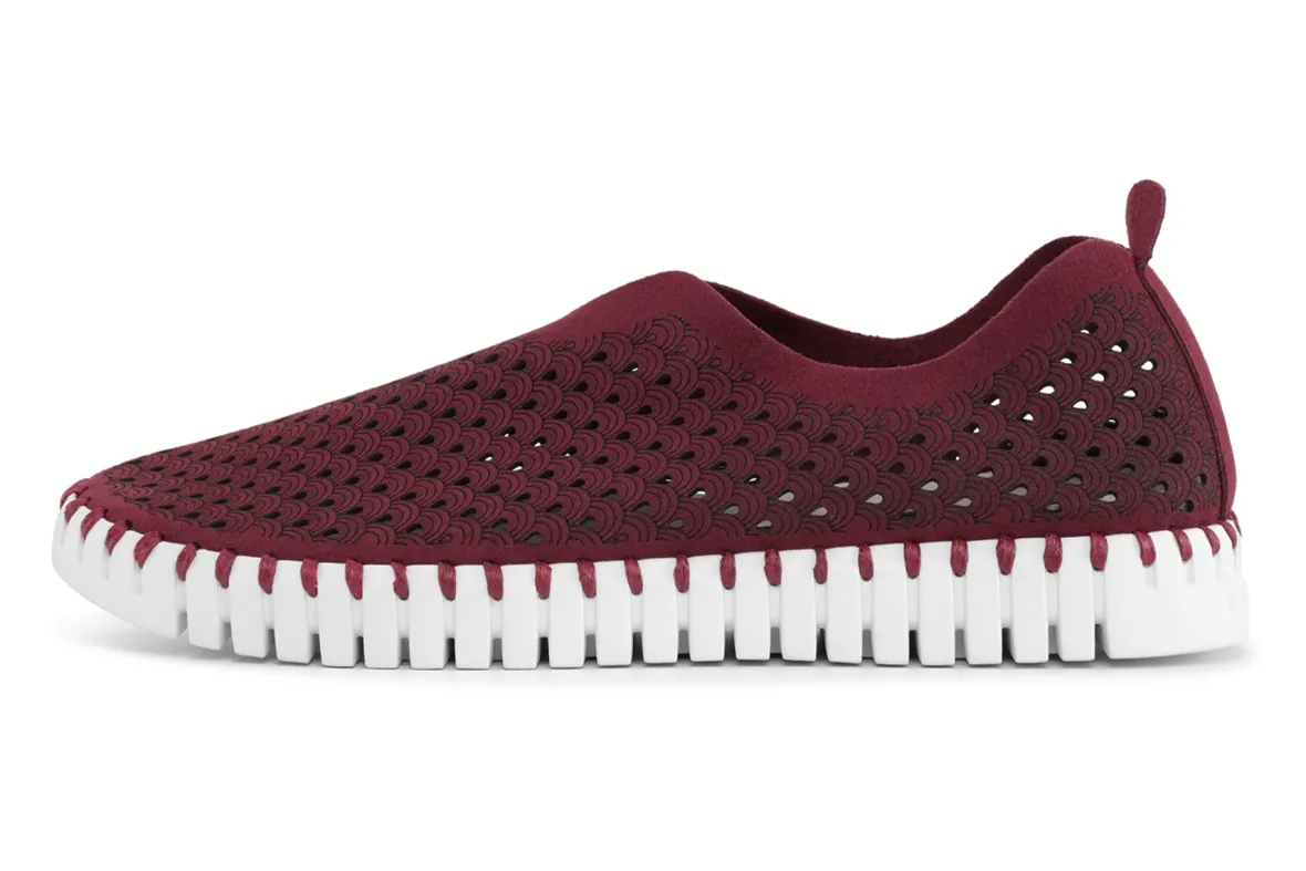 Ilse Jacobsen Tulip 139 is a lightweight and comfortable slip-on shoe. Prominent features include perforated recycled microfiber uppers, a removable insole and a sturdy and chunky outsole.