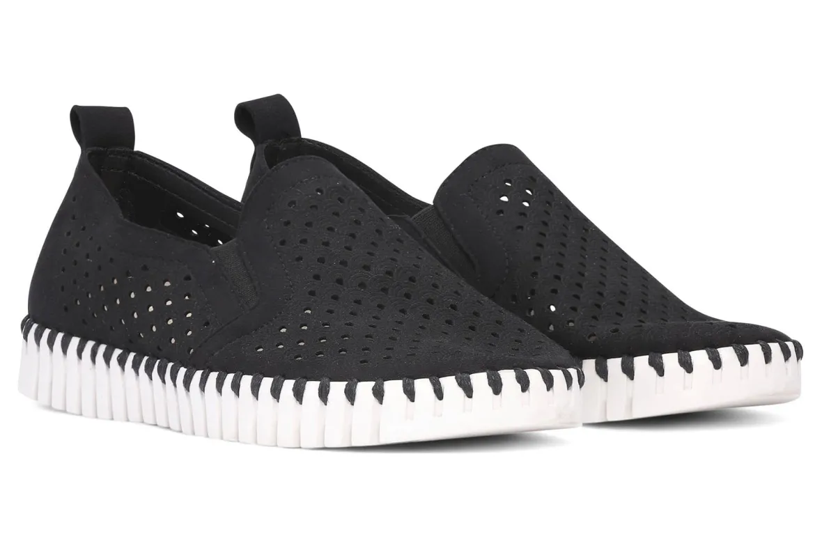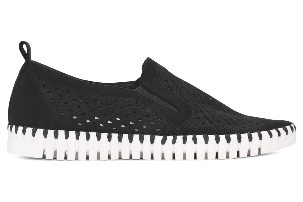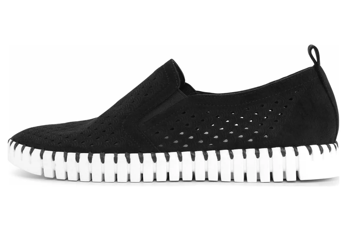 Lightweight shoe by Ilse Jacobsen is perfect for any occasion. The shoe is practical, very comfortable and has a great stylish appearance. Its flexible outsole made of natural rubber and breathable upper with a laser cut pattern makes it the perfect leisure and travel shoe. Crafted using intricate stitching (no glue) and recycled microfiber materials.
