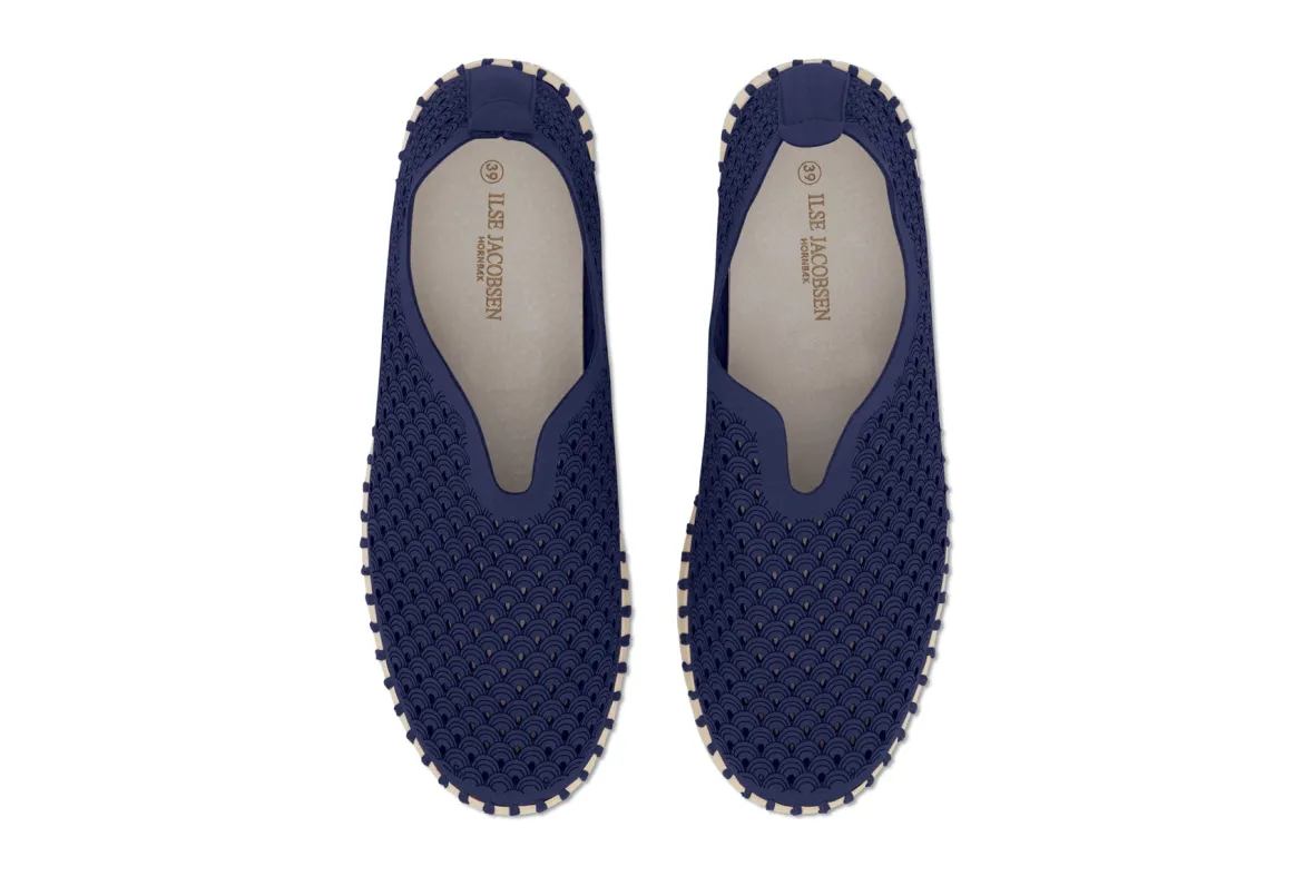 Lightweight shoe by Ilse Jacobsen is perfect for any occasion. The shoe is practical, very comfortable and has a great stylish appearance. Its flexible outsole made of natural rubber and breathable upper with a laser cut pattern makes it the perfect leisure and travel shoe. Crafted using intricate stitching (no glue) and recycled microfiber materials.