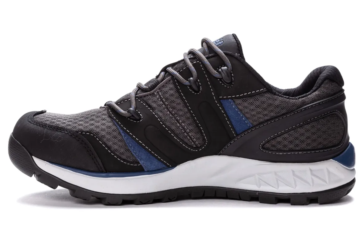 Waterproof bootie construction inside a suede Nubuck and mesh upper with padded collar and tongue and abrasion-resistant rubber toe cap. OrthoLite® X40 sets the industry standard for high rebound performance with an elasticity rating of over 40%. EVA midsole with a high traction rubber outsole and toe guard for durable outdoor wear.