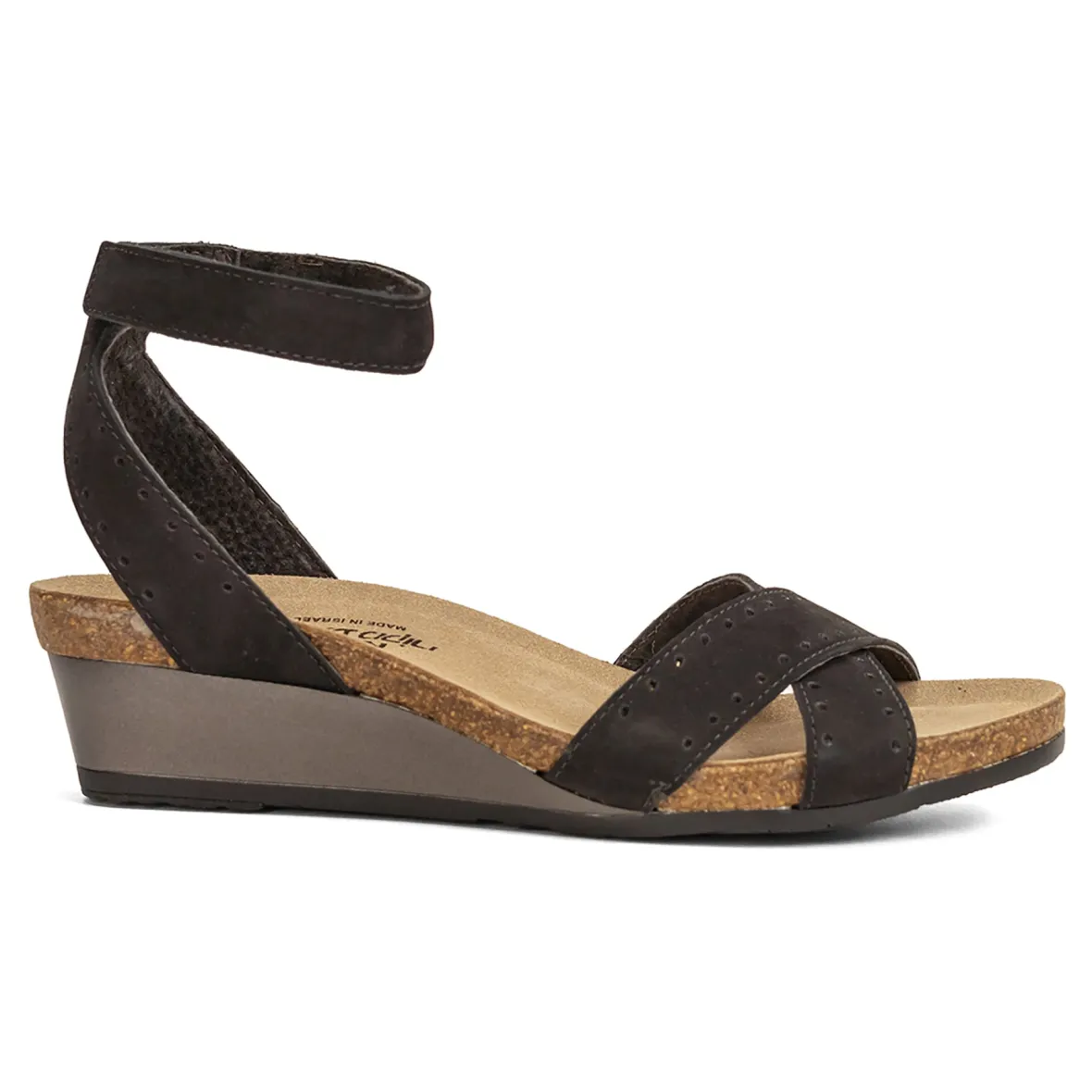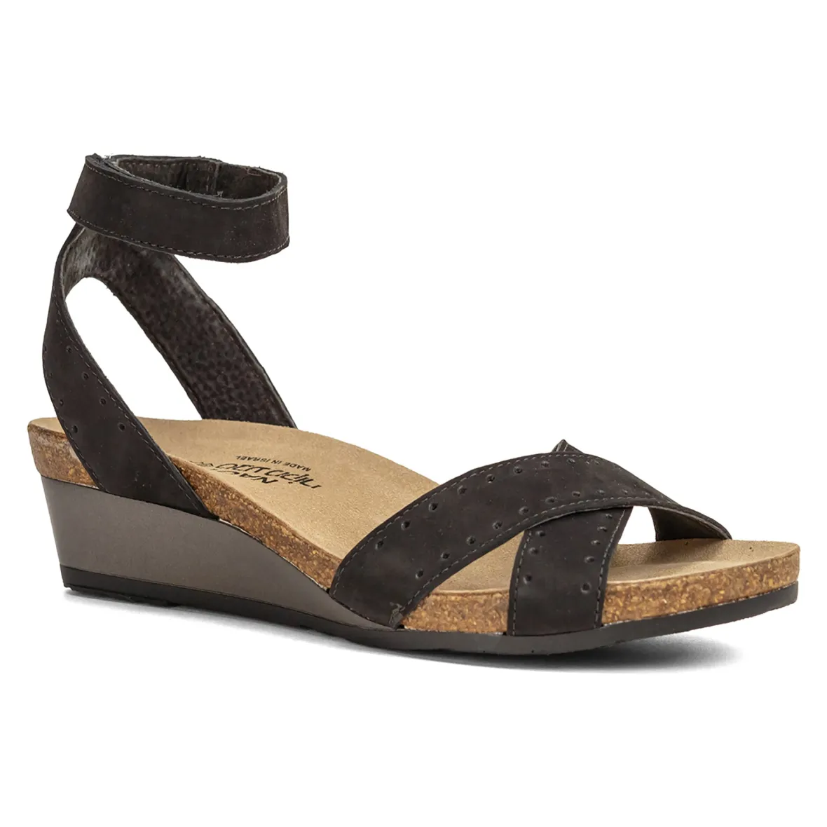 Warm weather style meets ultimate comfort in the women’s Naot Wand sandal. The strappy leather upper features circular cut outs and an adjustable hook and loop strap for a customized fit. The anatomic cork and latex footbed molds to the shape of your foot for a personalized fit, while the durable outsole provides traction and stability.