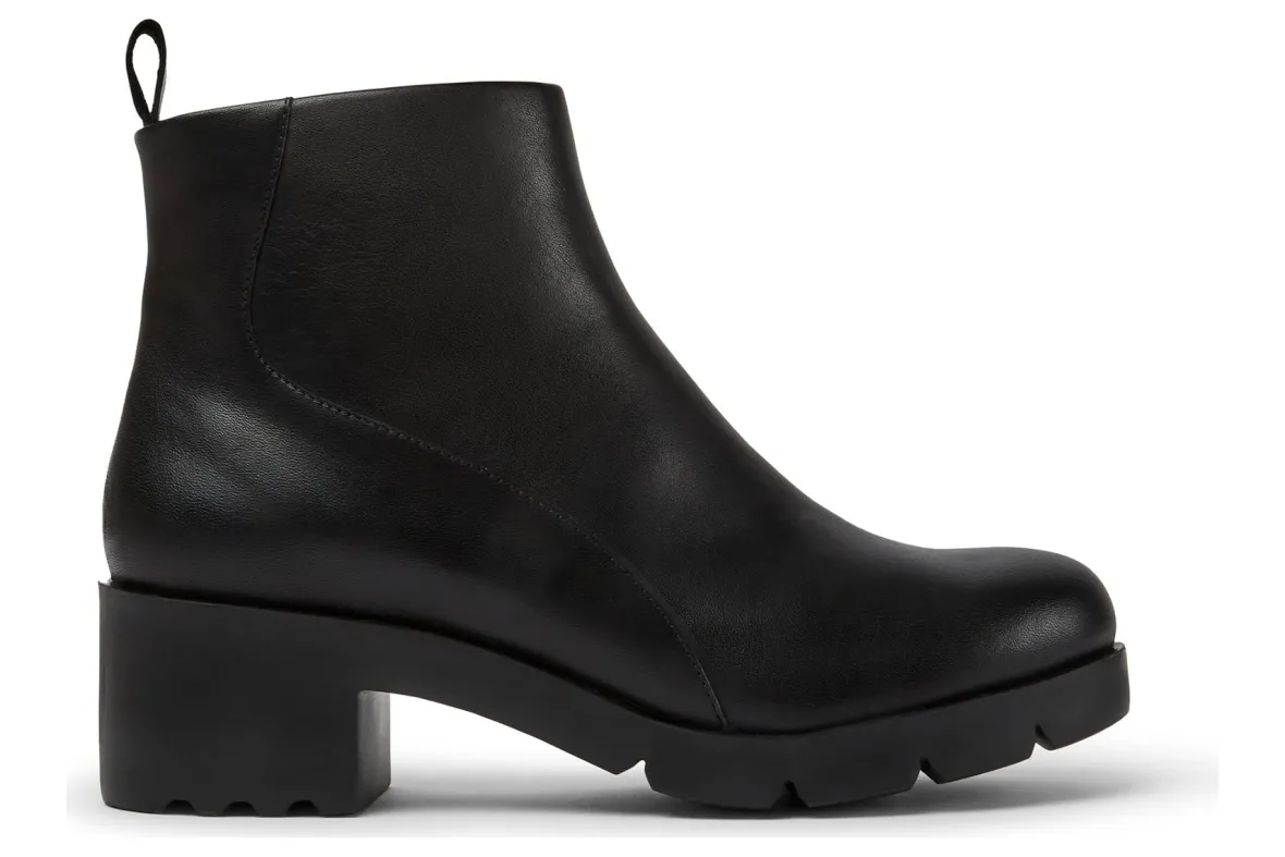 Zip ankle boot for women. Full grain leather with EVA outsole. The simple, strong design of the Wanda line brings a contemporary twist to the classic medium winter heel. Clean, bold lines and attention to detail guarantees this extraordinarily light and flexible boot will swiftly become a go-to winter basic.