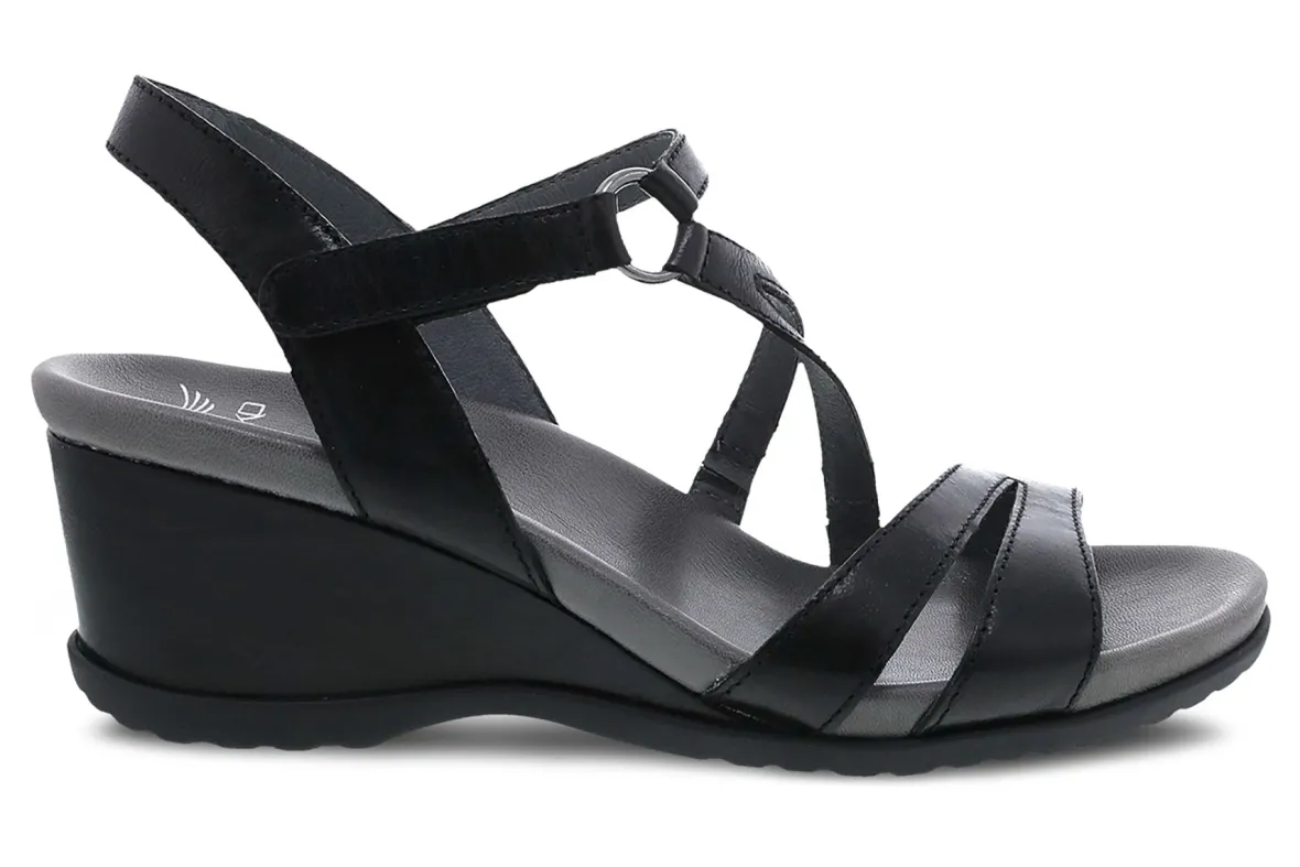 High-quality leather uppers are made in an asymmetrical design to add classy elements to an everyday wedge sandal with A…