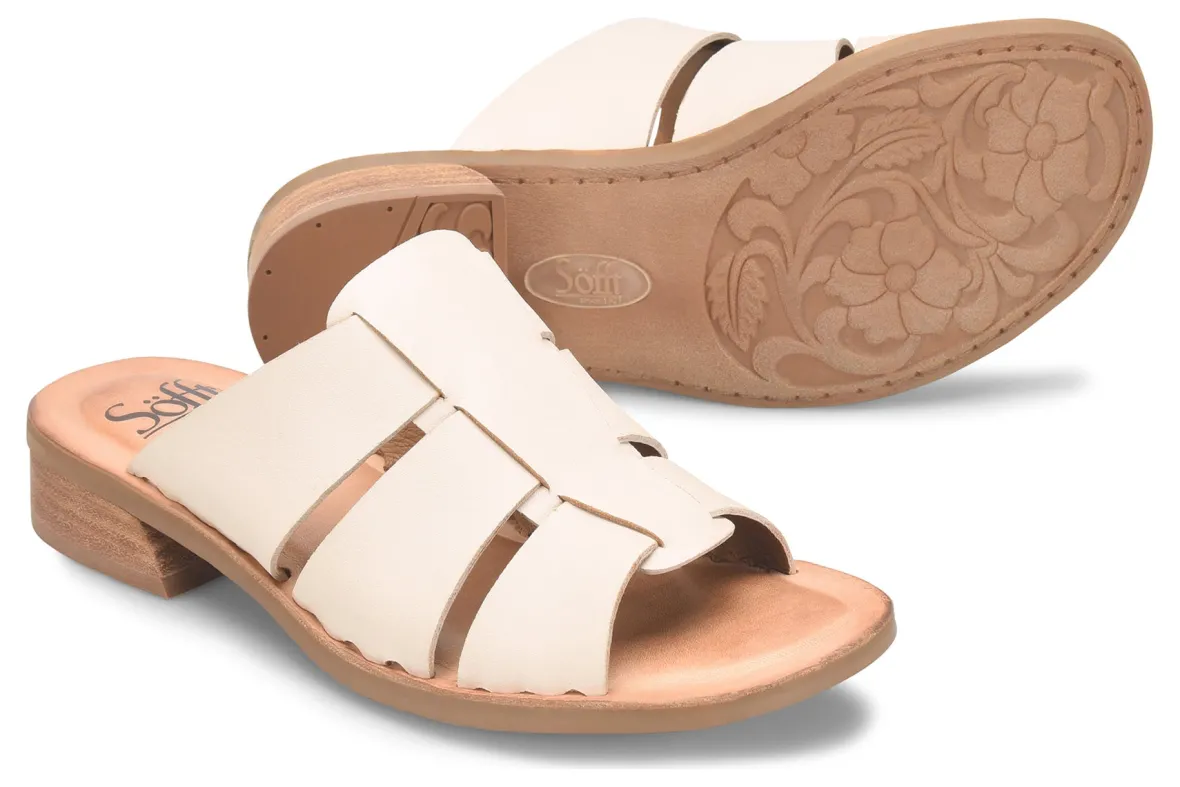 Sofft Almeda is an updated fisherman sandal built for comfort. These warm weather shoes have full-grain or distressed leather uppers and a sturdy TPR outsole. A leather-lined footbed with raised foam and a 1 ¼ inch stacked heel elevates these chic summer sandals.