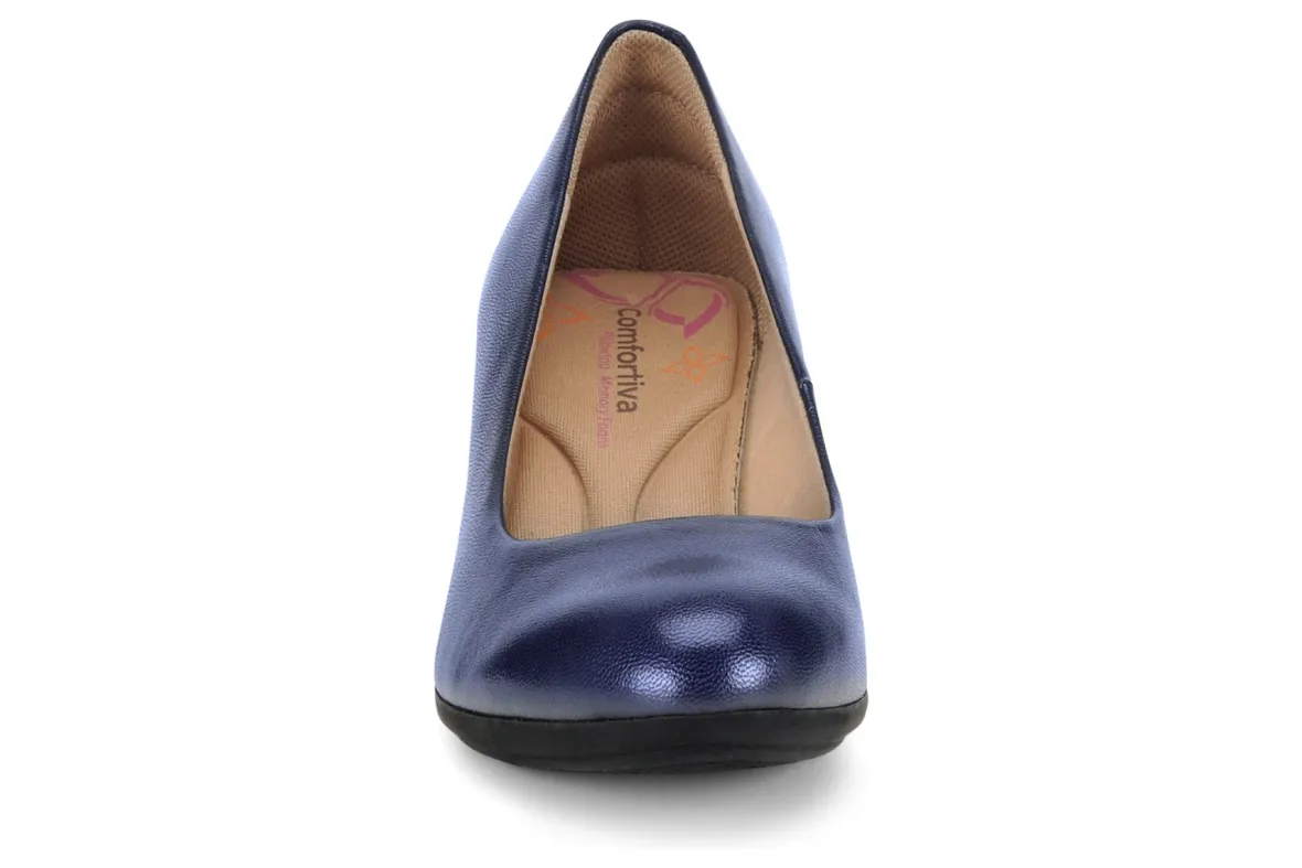 Comfortiva Amora is a chic and comfortable dress pump. The Comfortiva Amora features a memory foam footbed and heel counter, flexible outsole and 2 inch heel height perfect for any special occasion. The lightweight and flexible stacked heel adds height without compromising comfort.