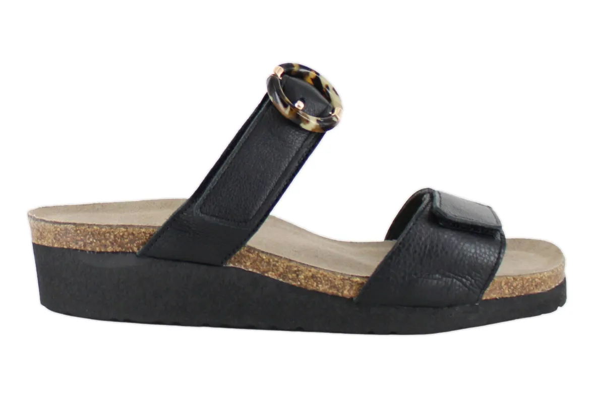 Naot Anabel is an effortlessly elegant sandal with buckle accent on its strap. The Anabel features an open back to slip on with ease. Naot’s anatomic cork & latex footbed is wrapped in a pampering suede and molds to the shape of the foot with wear.