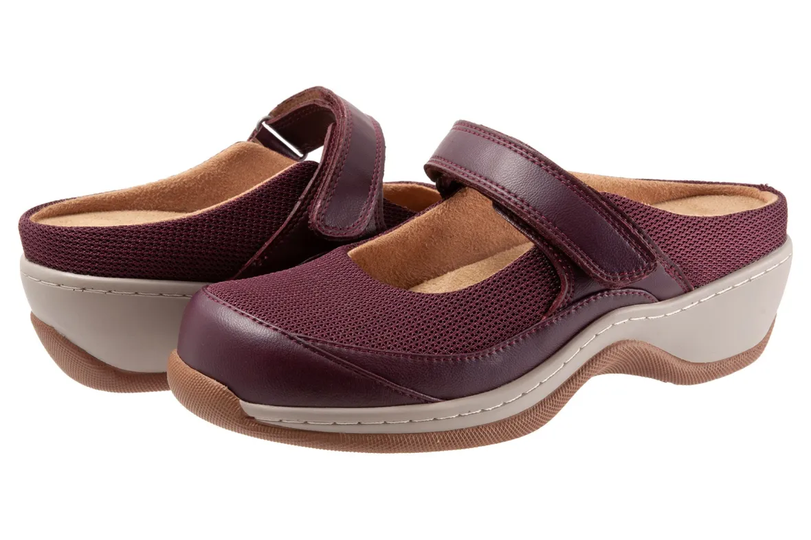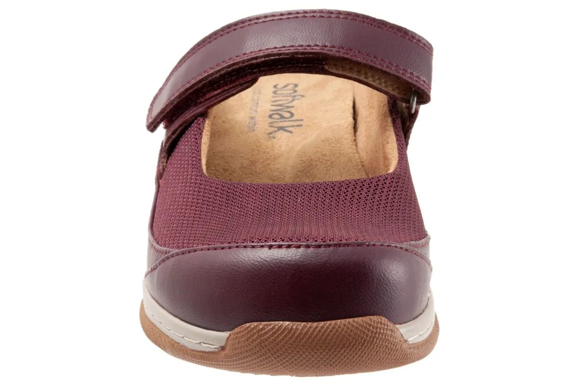 Softwalk Arcadia is an adjustable and versatile Mary Jane clog. A mesh leather upper, removable footbed, cushioned insole and PU outsole makes these clogs. An instep hook and loop strap provides support, while a memory foam cushioned midsole provides added comfort.