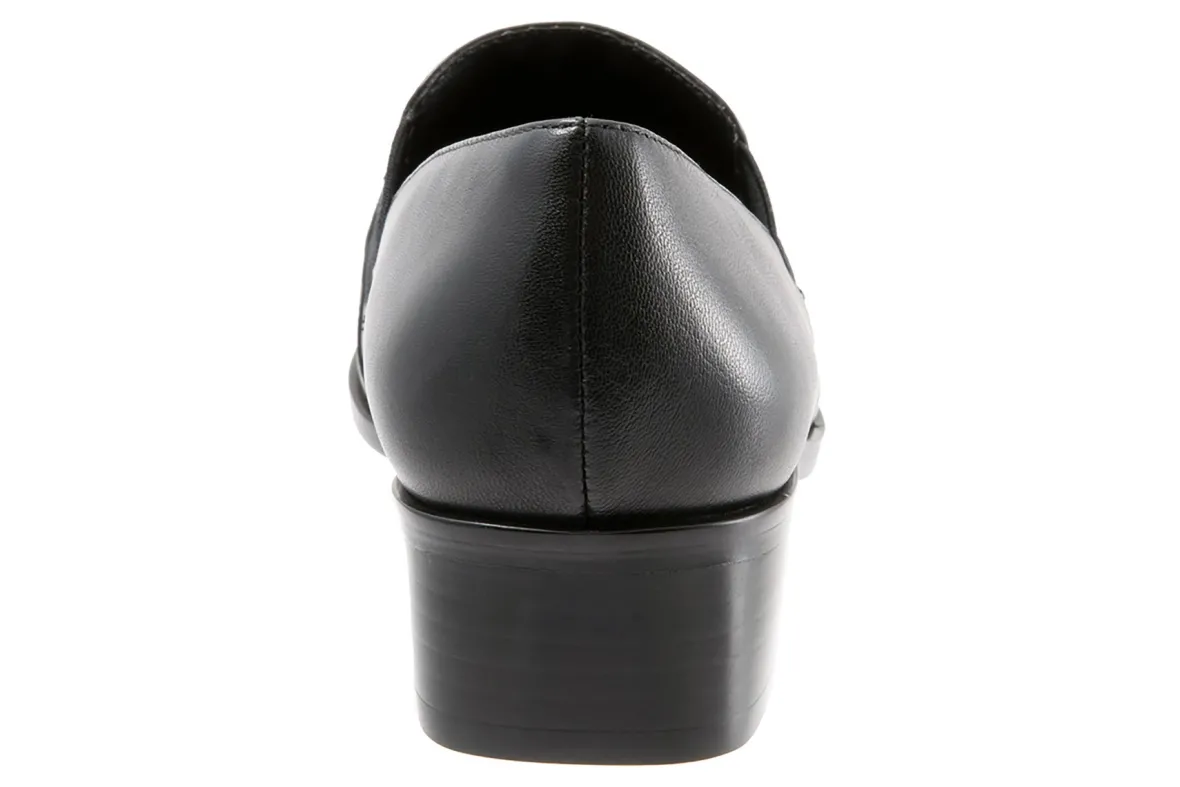 Trotters Ash is a comfortable and stylish slip-on loafer. These chic dress shoes have leather uppers, a PU footbed lining, dual goring and rubber outsole. A breathable tricot fabric upper lining, comfortable toe shape and 1 ¼ inch stacked heel height makes these loafers stand out.