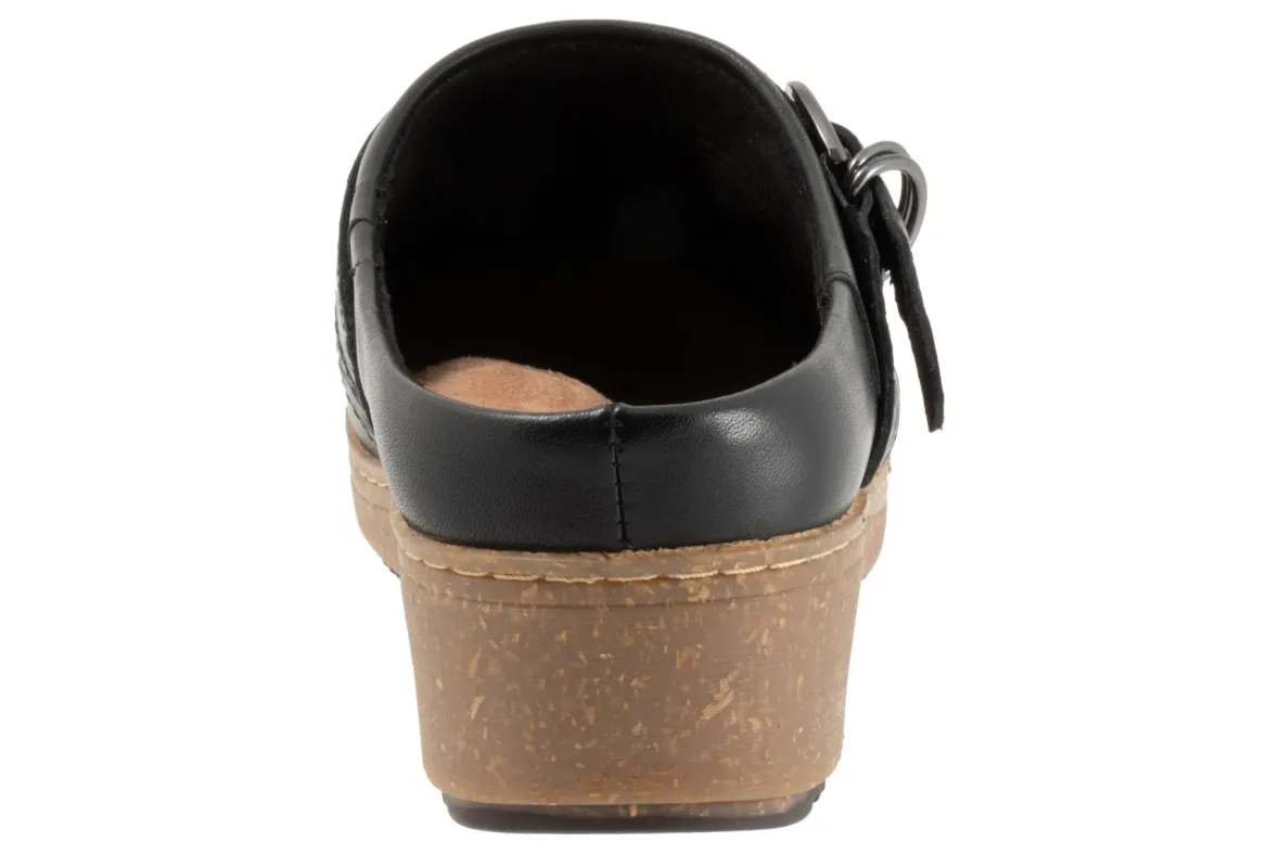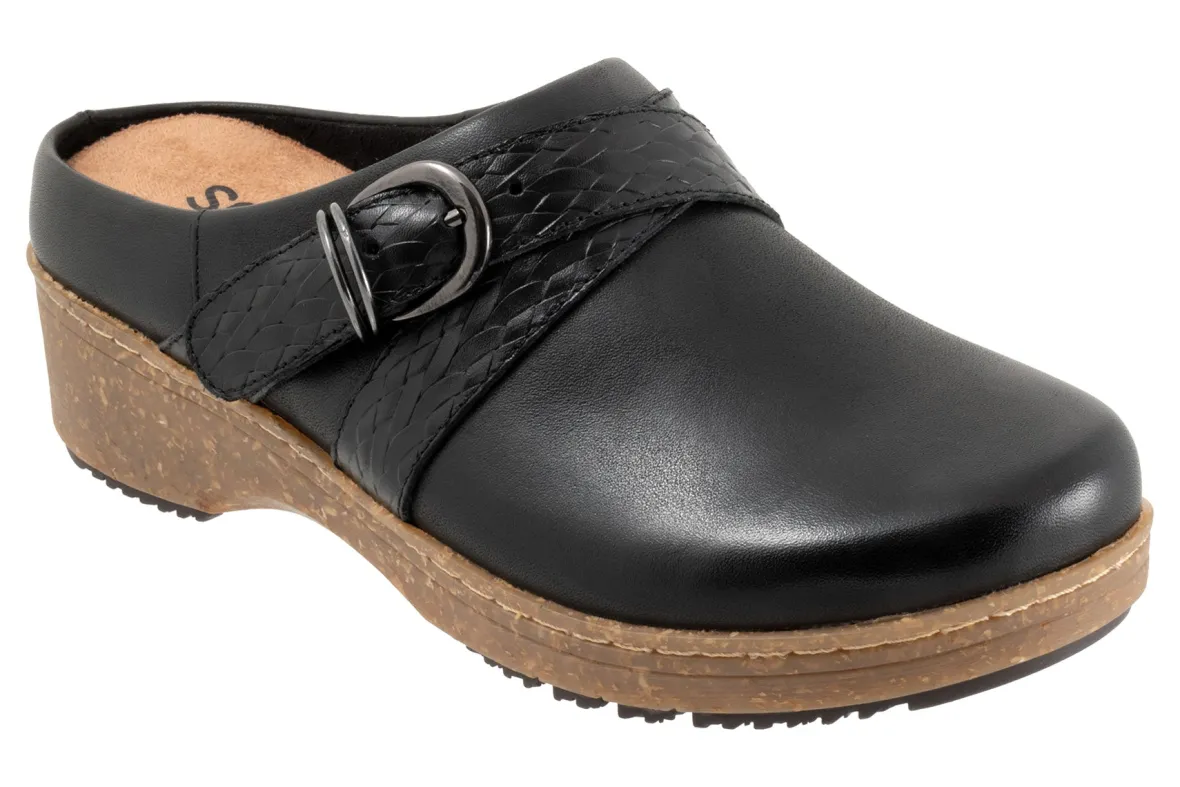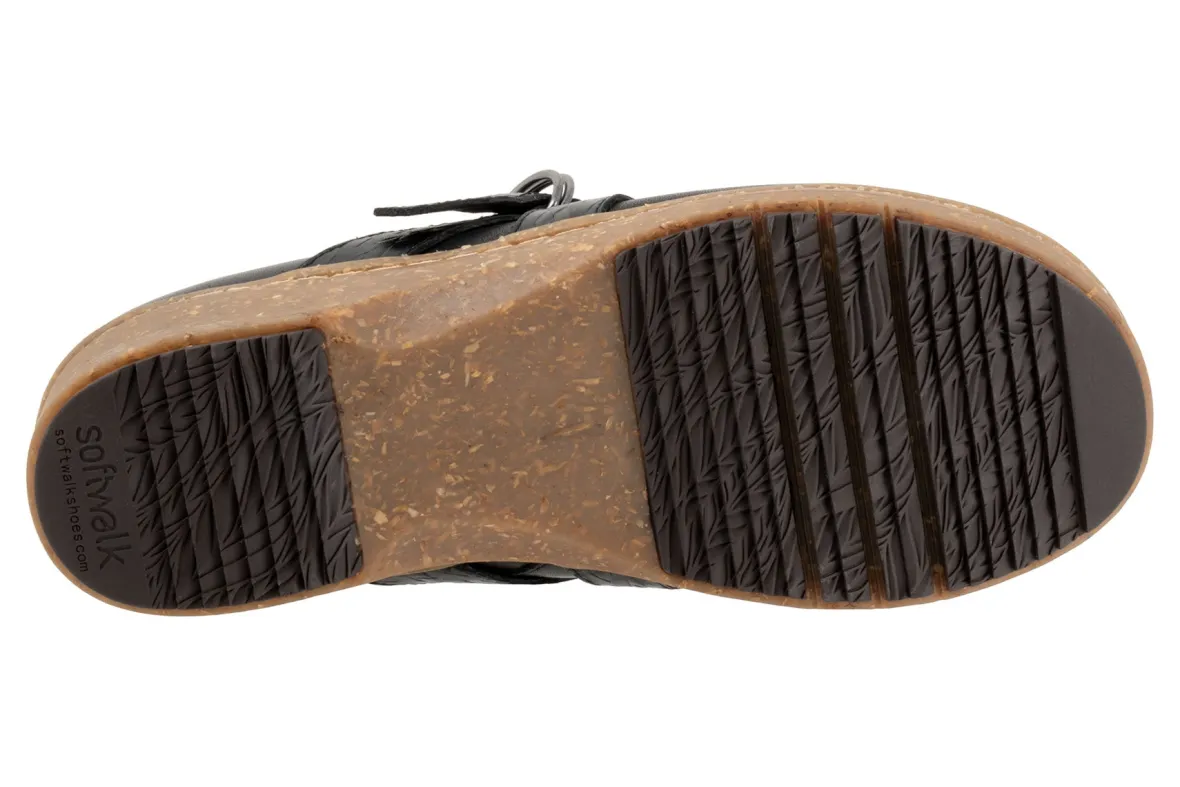The Asmara by Softwalk combines a chunky rubber sole with an cross over strap and buckle detail on the upper for a trendy look. The Asmara has soft lining and a removable footbed with arch support.