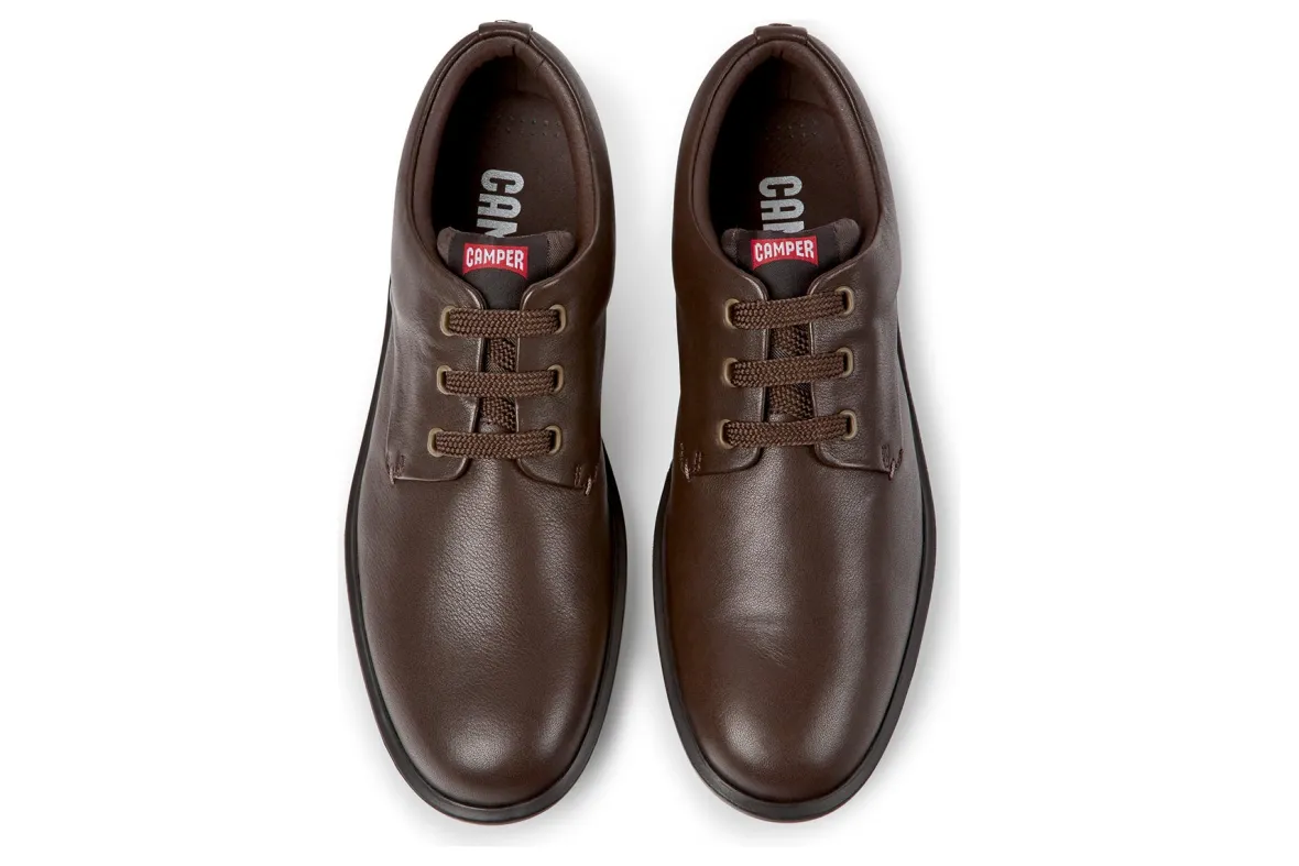 Camper Atom Work 18637 is a sleek and comfortable men’s blucher shoe. Features include a calfskin leather upper, lace-up vamp and lightweight EVA outsole. These formal shoes also have a padded upper for added comfort and mixed material lining to keep feet cool.