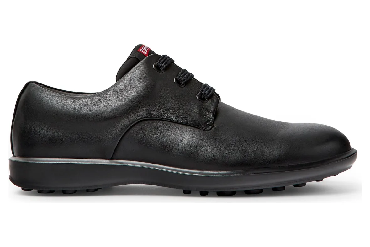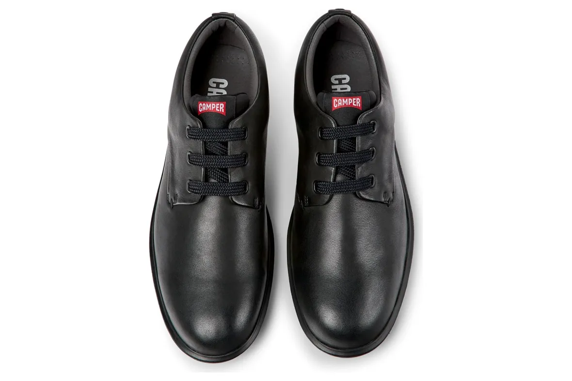 Camper Atom Work 18637 is a sleek and comfortable men’s blucher shoe. Features include a calfskin leather upper, lace-up vamp and lightweight EVA outsole. These formal shoes also have a padded upper for added comfort and mixed material lining to keep feet cool.