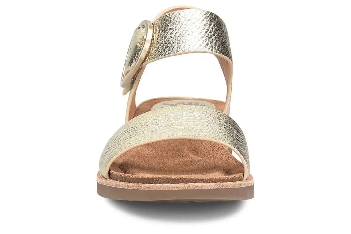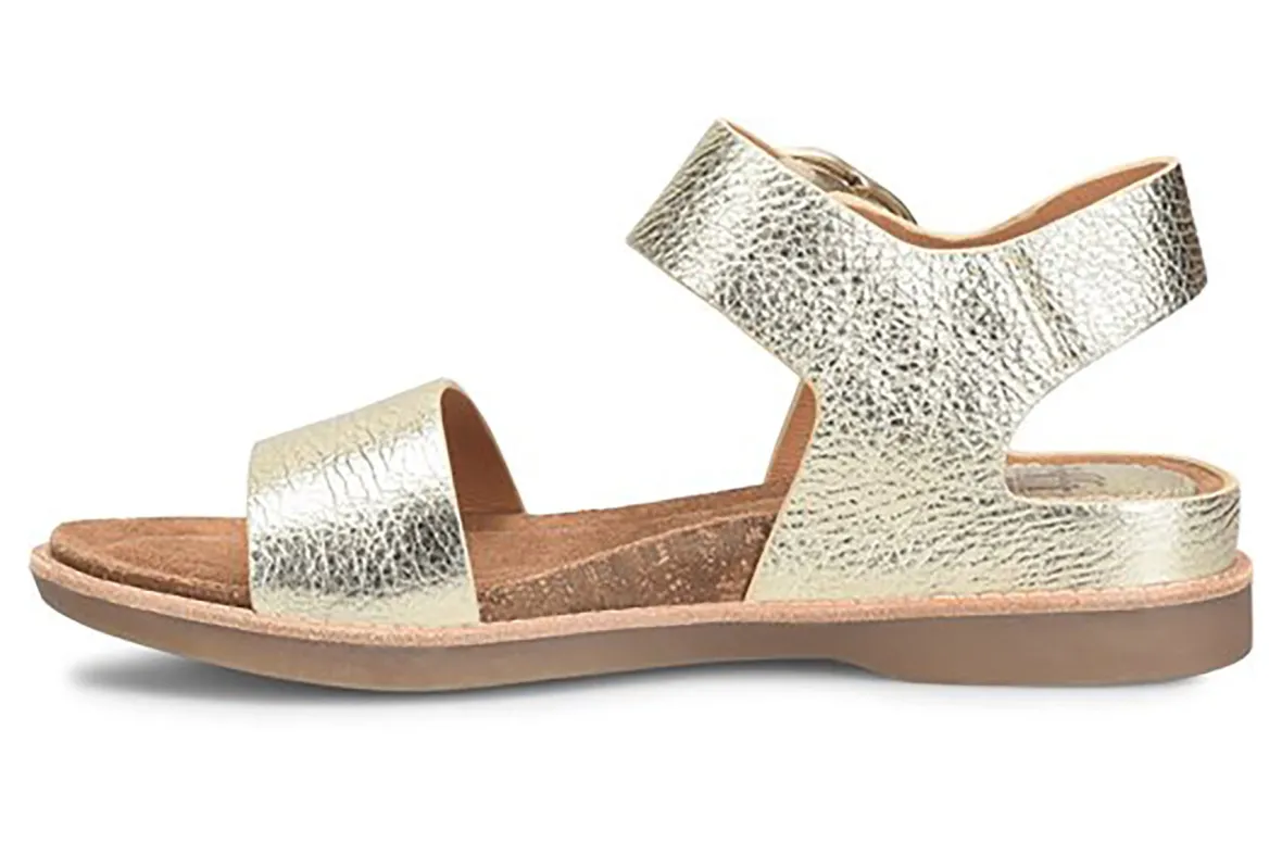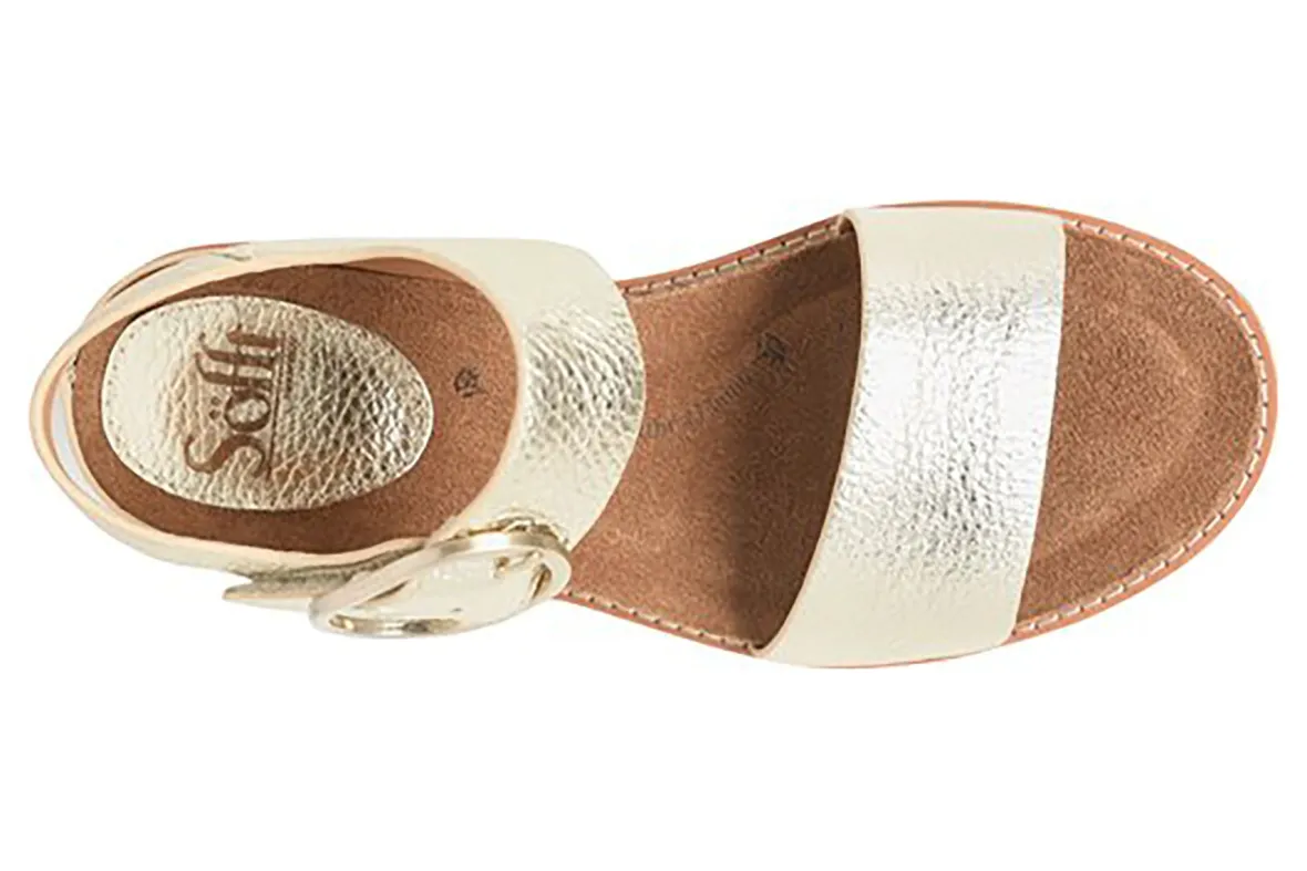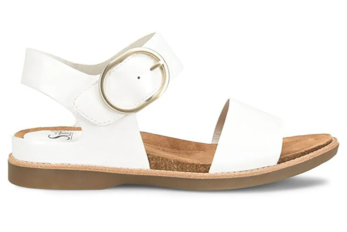 Sofft Bali is a comfortable and stylish walking sandal. These fashionable shoes have cushioned cork footbeds, adjustable hook and loop straps and an oval statement buckle.