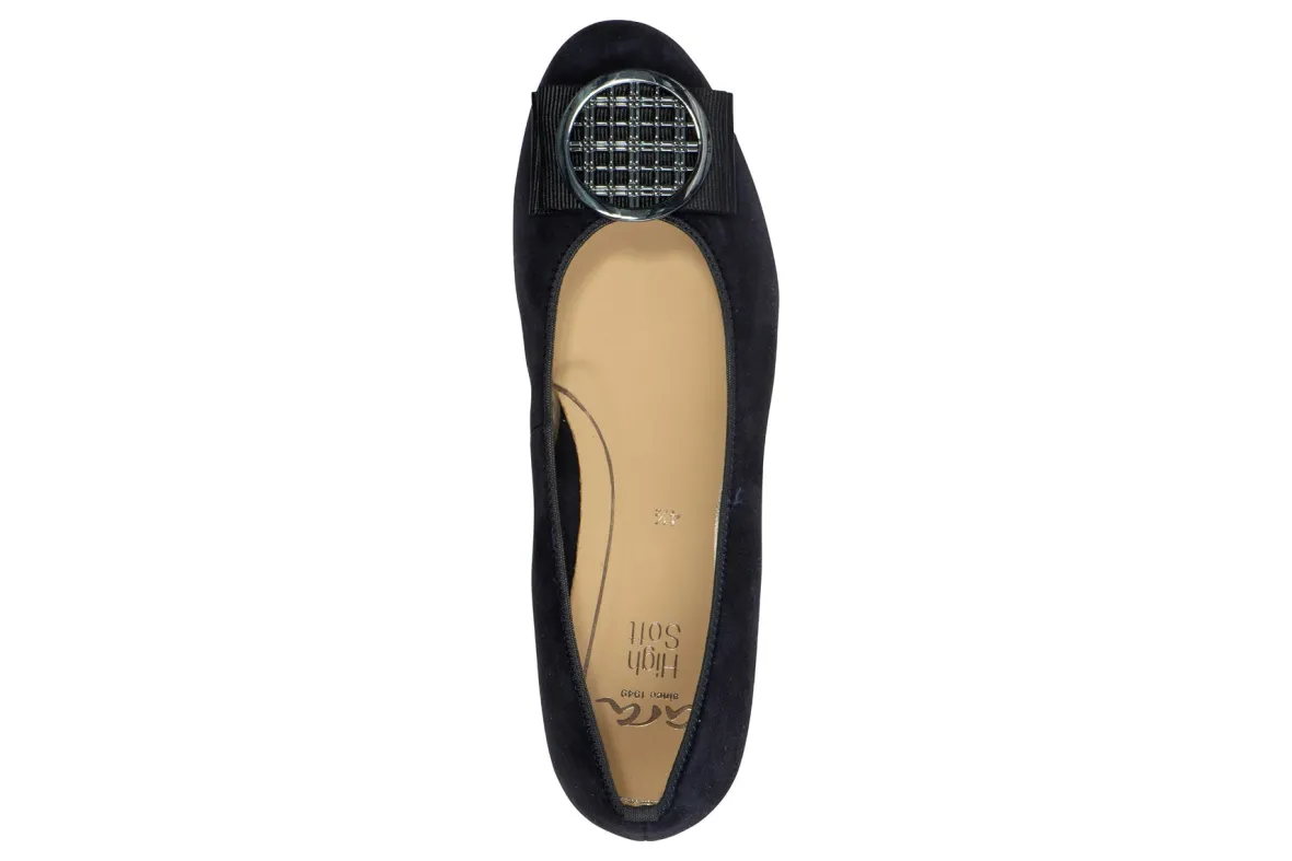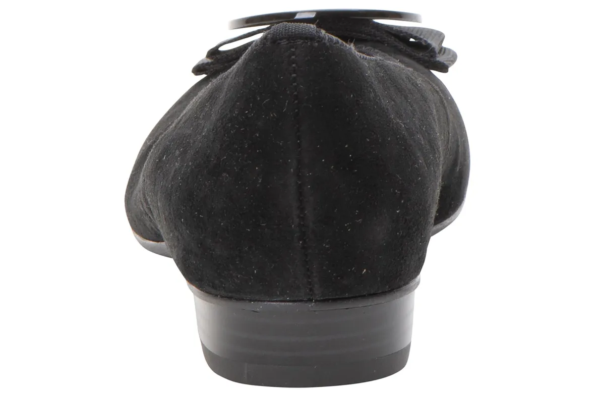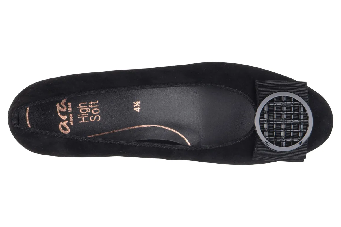 The ara Bambi is a classic smart ballet flat that is ideal for everyday to evening. An elasticized topline creates a custom fit with added comfort. This chic flat features a metallic ornament, fabric bow trim, a rounded toe, and ara’s HighSoft technology.