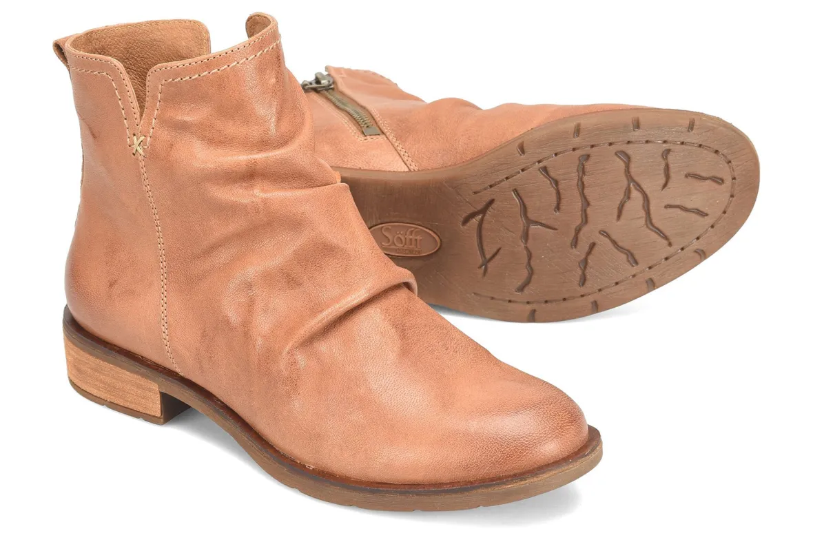 Sofft Beckie is a women’s boot designed for comfort and support. These slouch booties have leather or suede uppers, cushioned footbed and lightweight TPR outsole. A soft microfiber lining, zippered side closure and 1 ½ inch heel height outlines these chic boots.