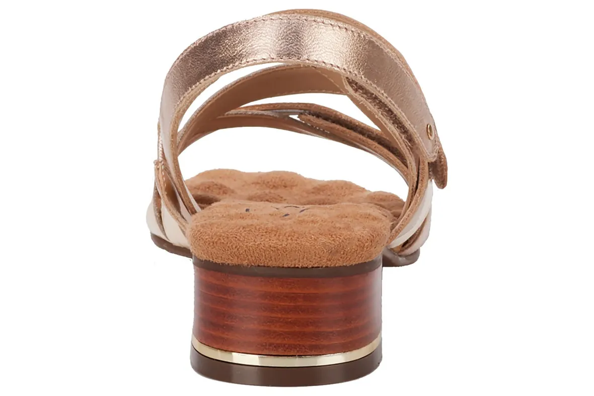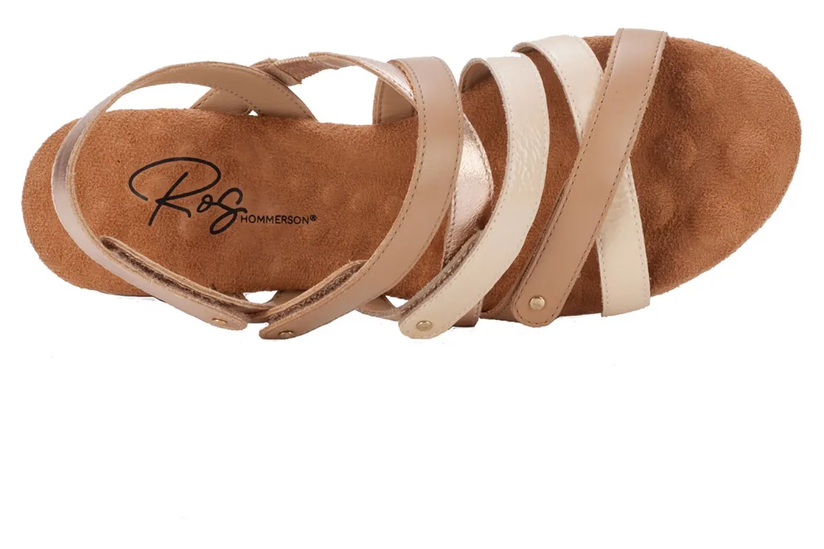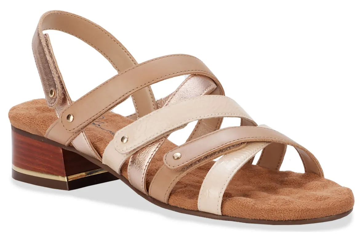 Comfort, adjustability and pizzazz all in one! Breeze into summer with this strappy sandal from Ros that includes four completely adjustable hook and loop closure straps, one discreetly elasticized strap, and set off with metallic nail heads and heel detail. Signature Tiny Pillows insoles are both cushioned and pillowy with moderate arch support, making every step a dream!