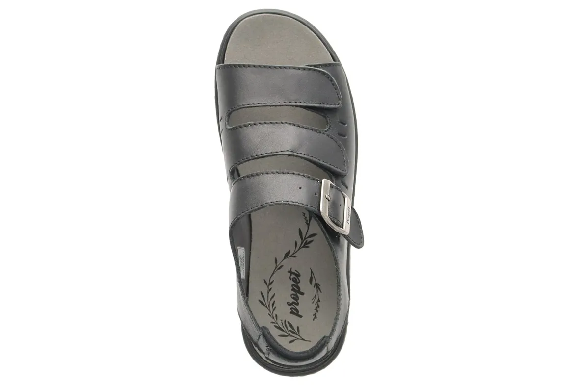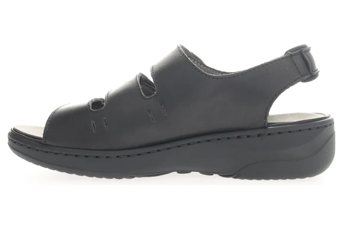 Supple, full-grain leather with three adjustable straps with hook and loop and one buckle, plus comfort slingback strap.
