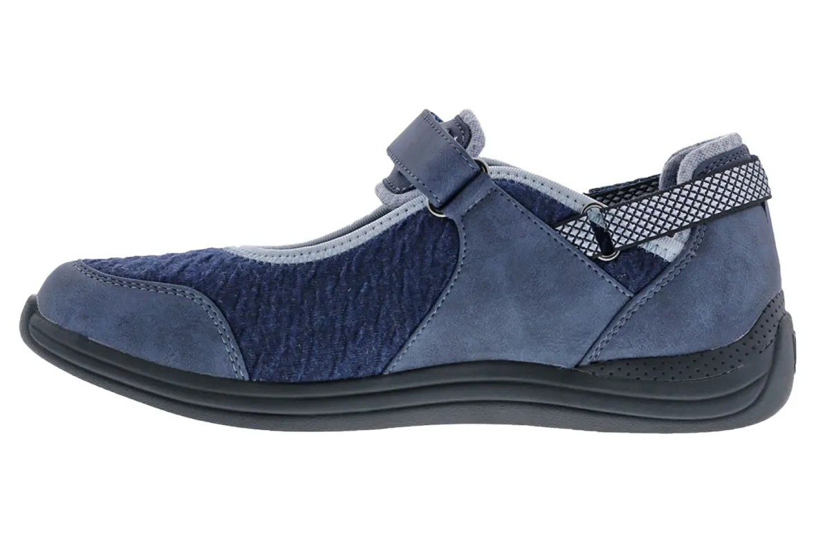 Drew Shoes Buttercup is a stylish Mary Jane shoe. Features include adjustable hook and loop straps, breathable uppers, a removable footbed and flexible outsole. Cushioned heels provide added support, while a deep toe box offers a roomy and comfortable walking experience.
