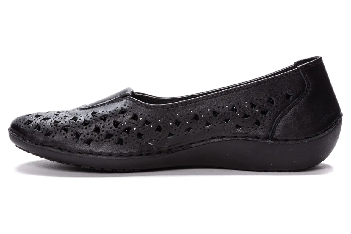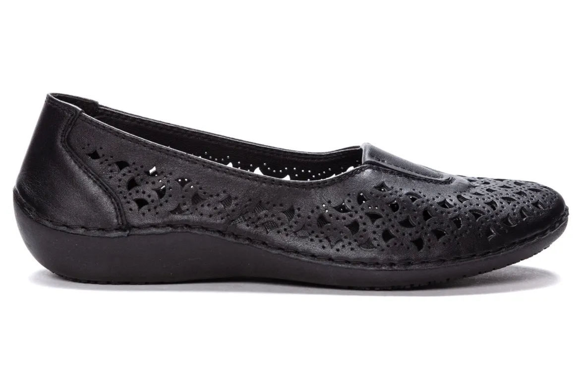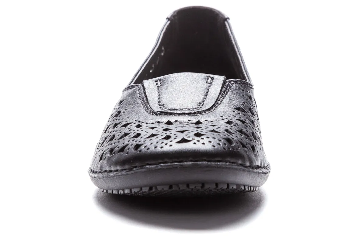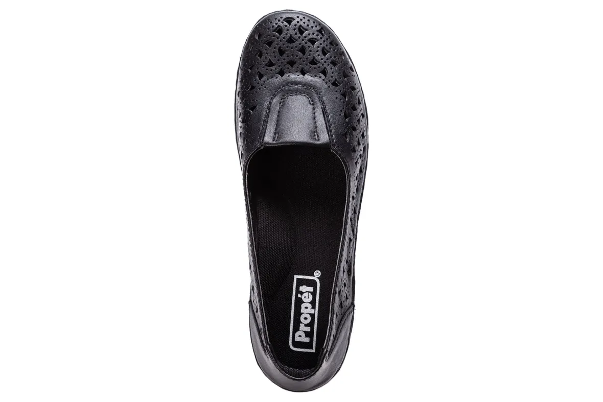 Propet Cabrini is a flexible and durable slip-on shoe. Prominent features include full-grain leather uppers, removable footbed and lightweight rubber outsole. A center tab with stretch goring provides added comfort, while a perforated cutout design offers elegance and style.