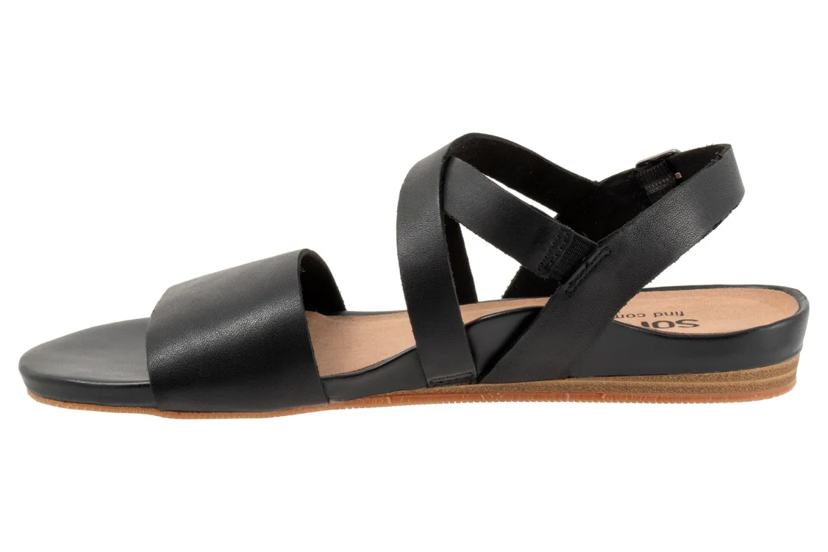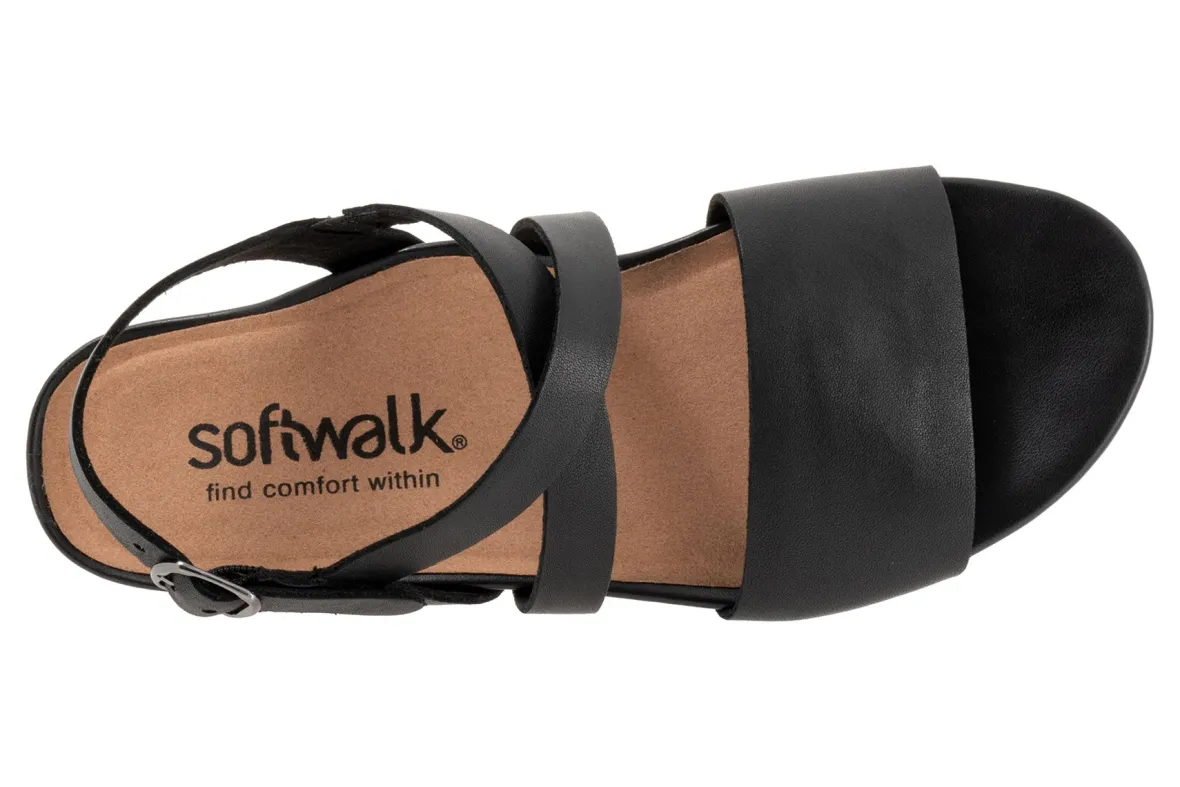 The Softwalk Cali sandal has a cute combination of wide and thin criss-crossing straps. Elastic goring and an adjustable buckle allow for a flexible good fit. The Cali sandal offers a cushioned footbed with integrated arch support on a lightweight, flexible sole for maximum comfort.