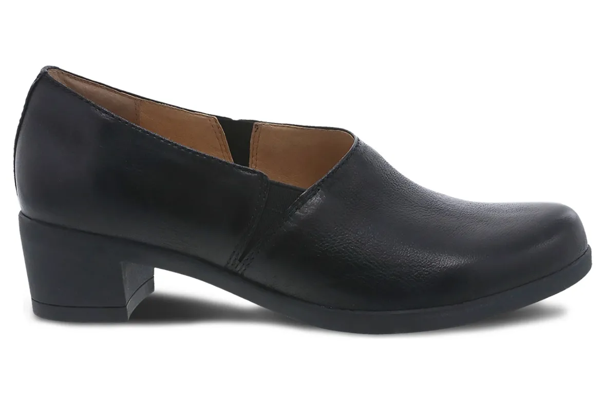 Dansko Camdyn is a pull-on dress loafer with an elegant heel. These shoes have a leather lining, removable EVA footbed and 1 ¾ inch heel perfect for the office. Leather and recycled linings reduce odors and a rubber outsole adds long-lasting durability.
