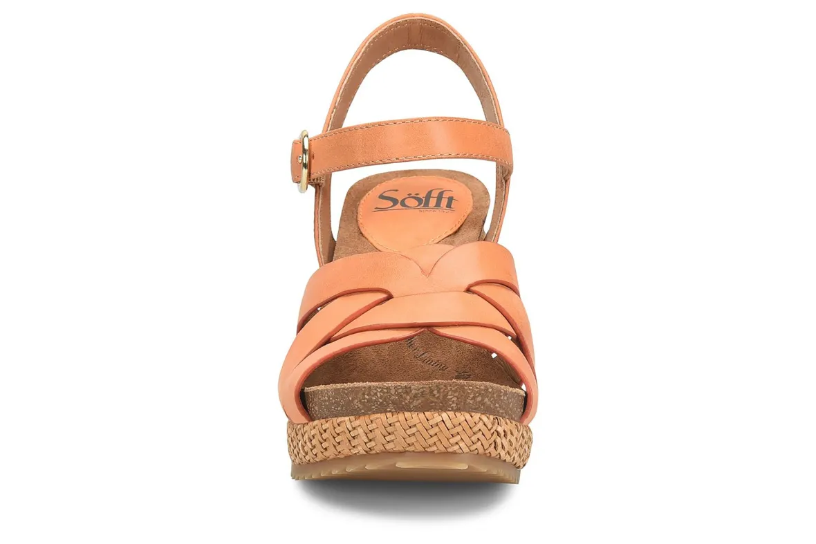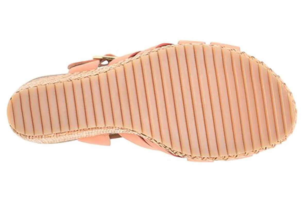Sofft Carlana is our chic and stylish slingback wedge sandal. These warm weather wedge shoes have premium leather uppers, an adjustable buckle strap and a basketweave PU wedge with TPR outsole.