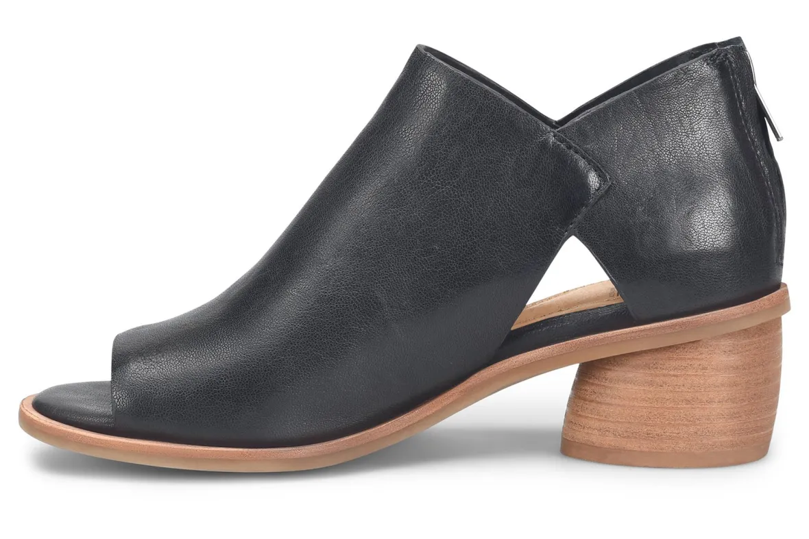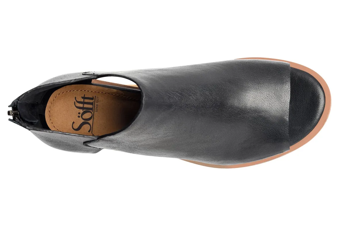 Sofft Carleigh is a trendy and comfortable shootie. These chic shoes have a leather upper with a peep toe and side cutouts, as well as a flexible TPR outsole. A back zipper, cushioned footbed and 2-inch rounded wrapped heel complete this elegant silhouette.